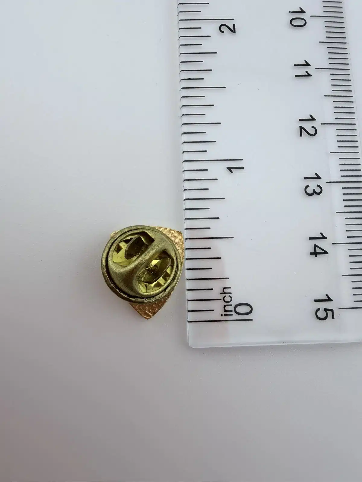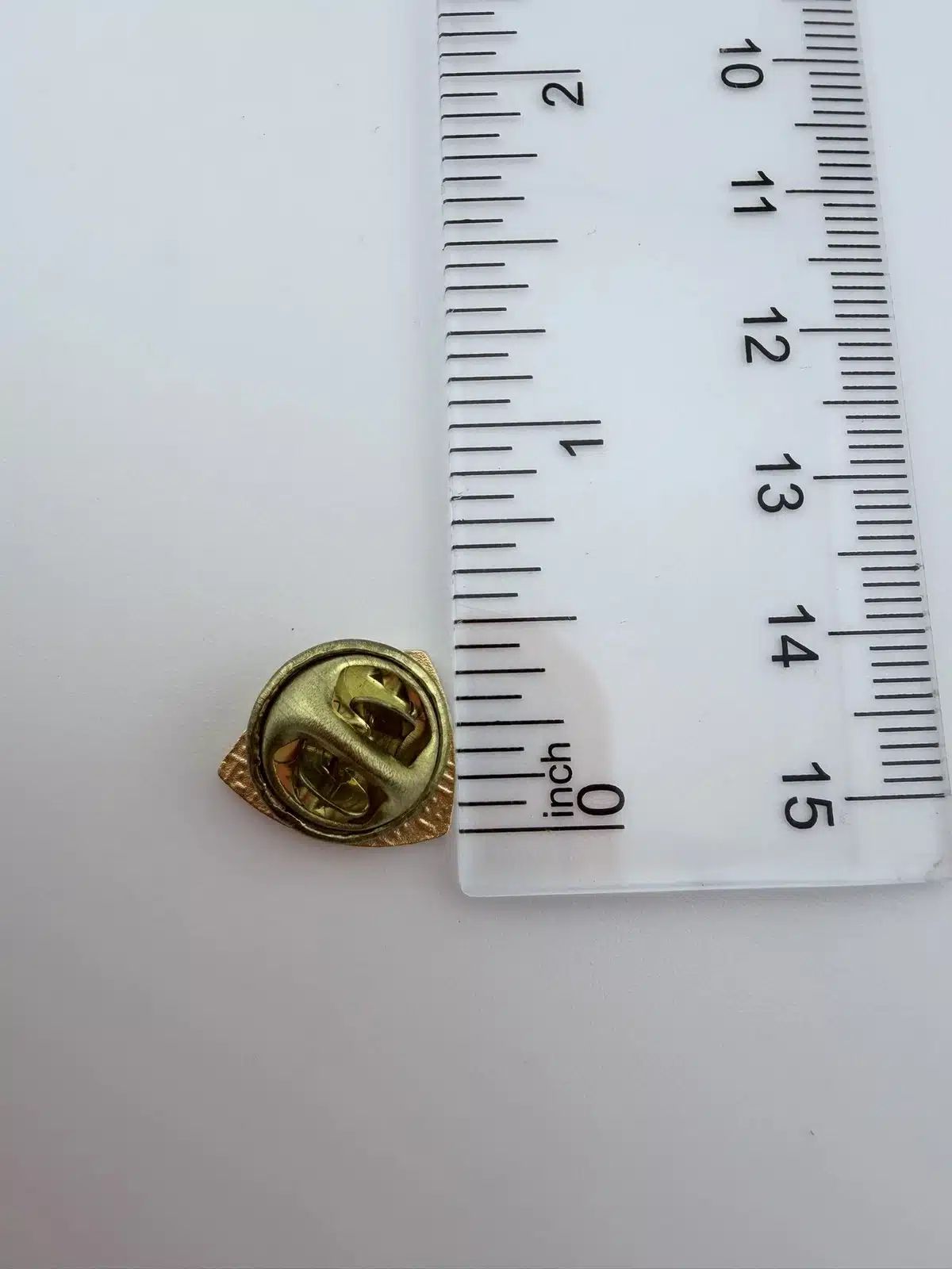 The pin measures just over 1/2 inch in height and less than 1/2 inch in width, making it a subtle yet meaningful piece that can be worn comfortably on a lapel, uniform, or display board.