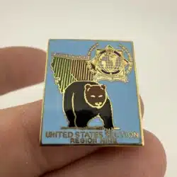 This pin showcases the International Police Association logo, prominently featuring the outlines of California and Nevada, symbolizing the unity of law enforcement across these states. A striking bear is depicted in the foreground, representing California’s state symbol and adding a distinctive element to this collectible piece.