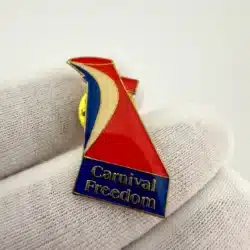 This pin features Carnival Cruise Lines’ iconic exhaust funnel stack logo prominently displayed, symbolizing the brand’s commitment to fun and adventure at sea. Below the logo, the name ‘Carnival Freedom’ is elegantly inscribed, representing one of the fleet’s popular cruise ships launched in 2007.