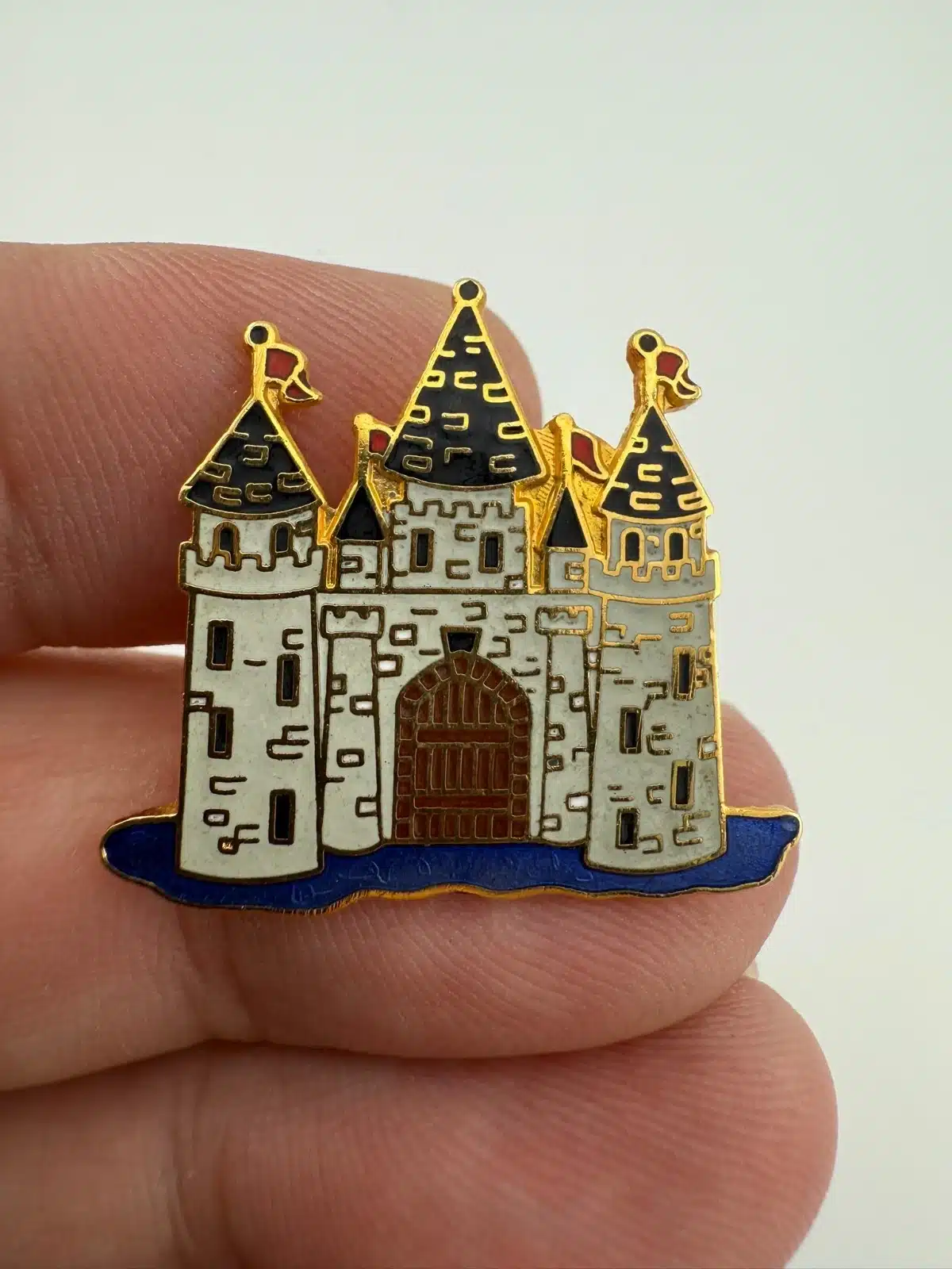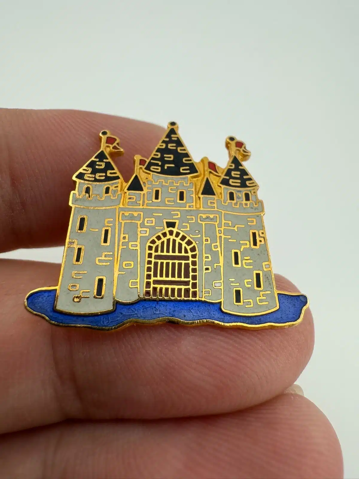 Castle Lapel Hat Pin – Flags, Drawbridge, Moat, Water