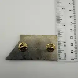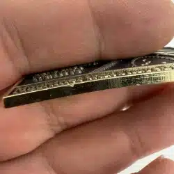 Used with marks including a ding at the bottom, scuff marks on gold tone outline, and age related buildup.