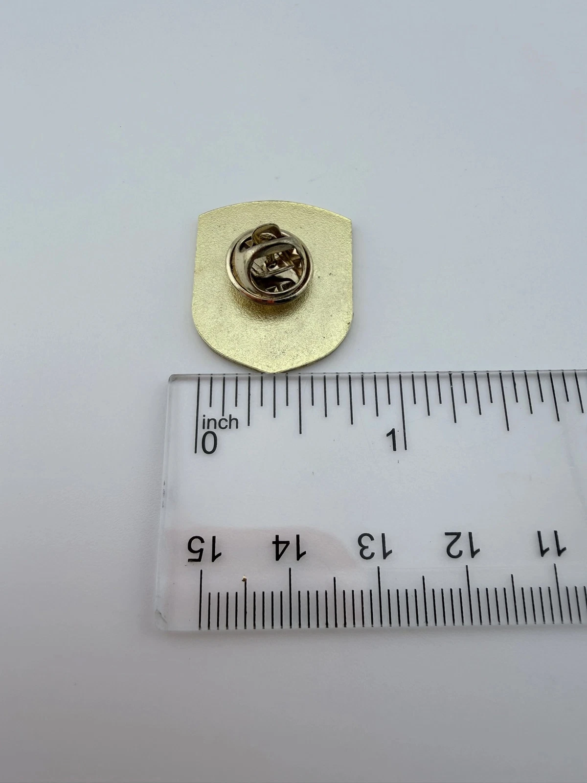 The pin measures approximately 3/4 inch in width by 1 inch in height.