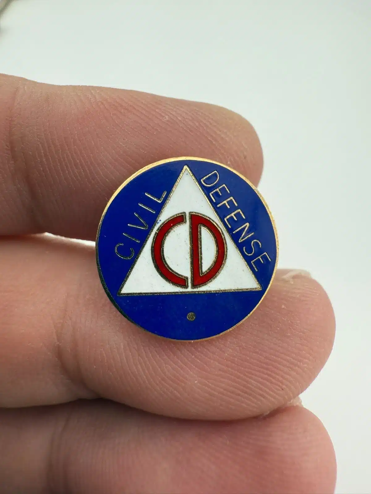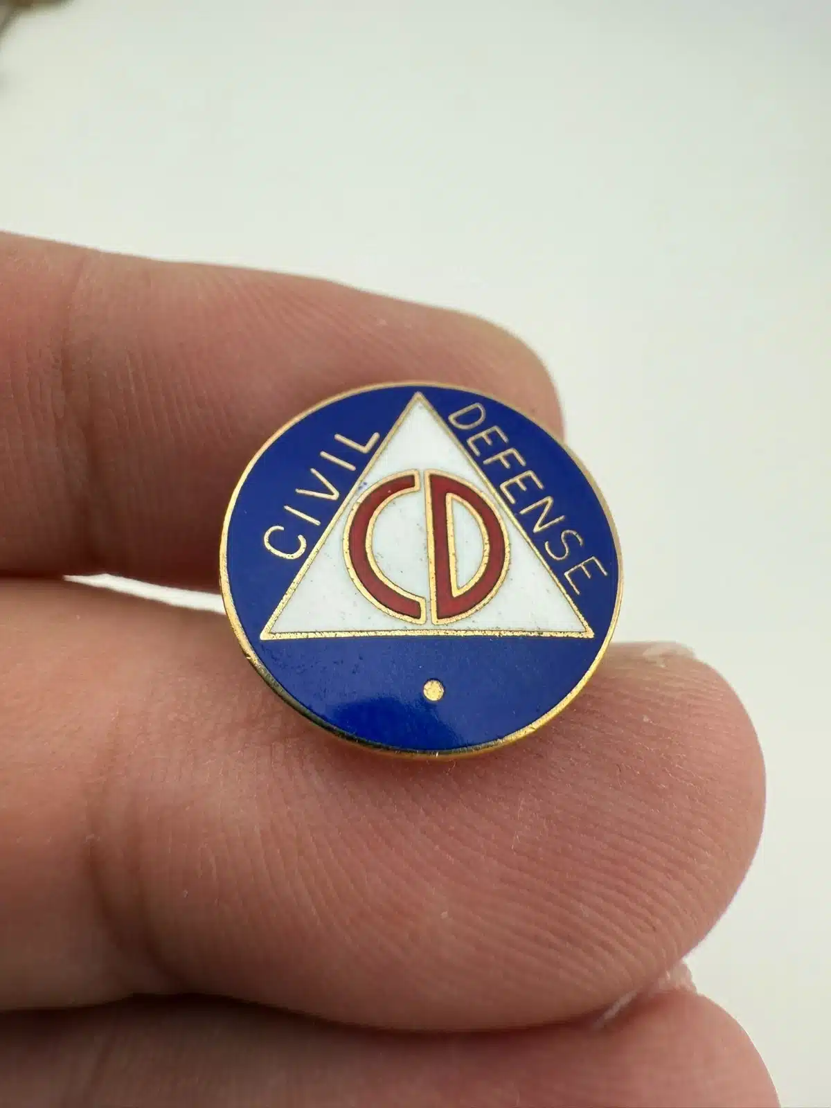 CD Civil Defense Screwback Pin – Unique Small Dot Below Logo