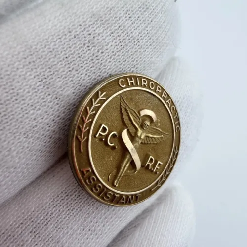 Chiropractic assistant pins like this were used to identify support staff working in chiropractic offices and related settings.