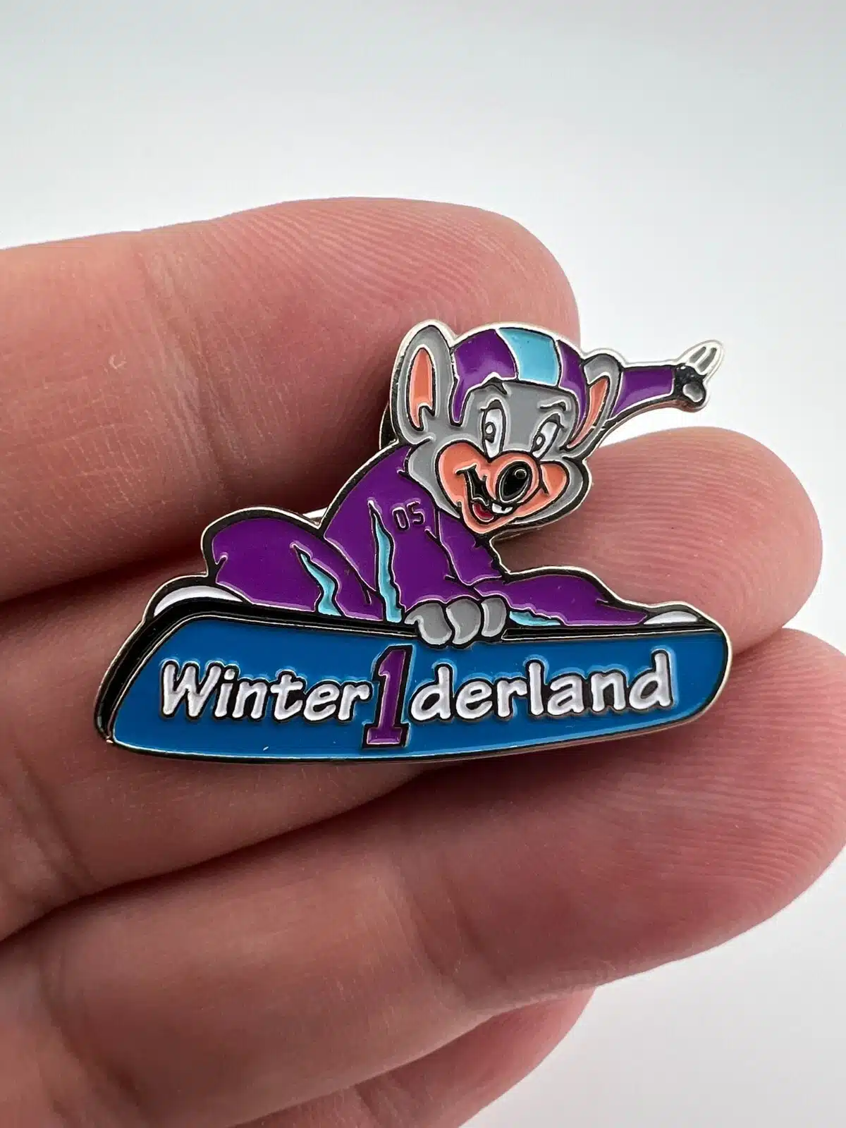 Chuck E Cheese Winter1derland Snowboarding Pin – Rare – Used