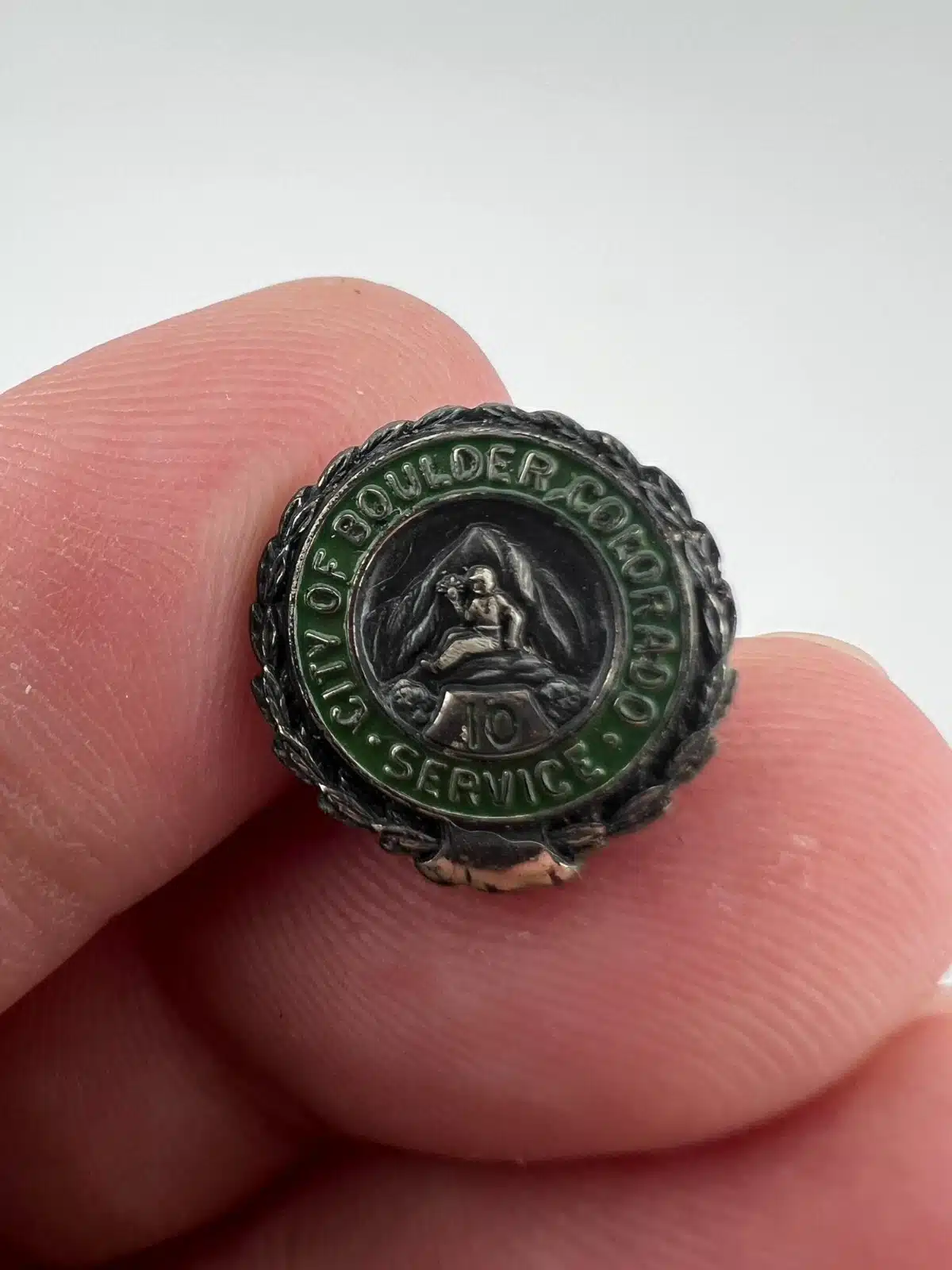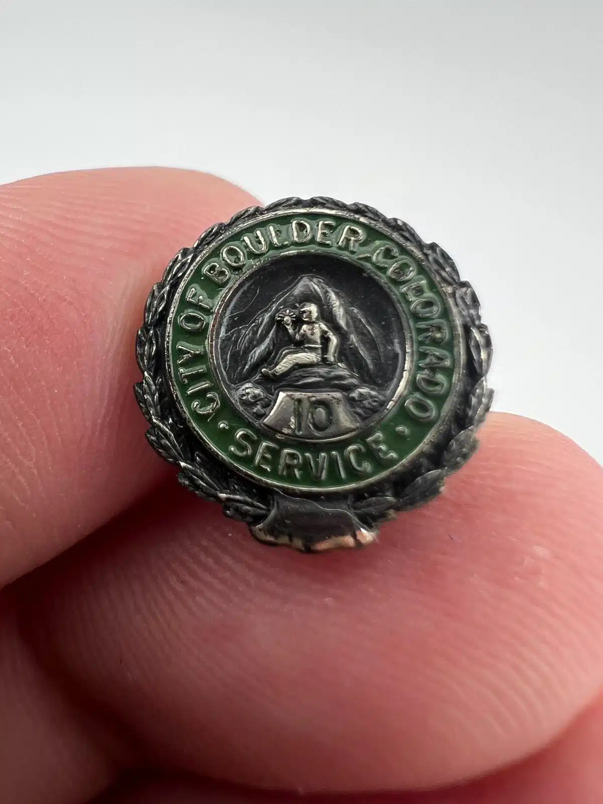 City Of Boulder Colorado 10 Year Service Lapel Hat Pin – LGB Sterling? AGED
