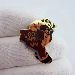 This pin showcases the distinctive outline of the city limits of Coon Rapids, Minnesota up against the Mississippi River. Atop this representation sits a detailed raccoon, symbolizing the local wildlife and adding a charming touch to the overall design.