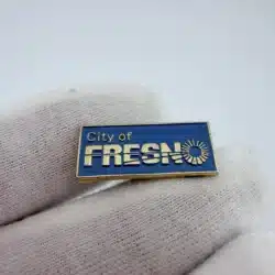 The City of Fresno is located in California’s Central Valley and serves as a major regional hub for agriculture, government, and commerce. Pin measures approximately 1 inch in width by 3/8 inch in height.