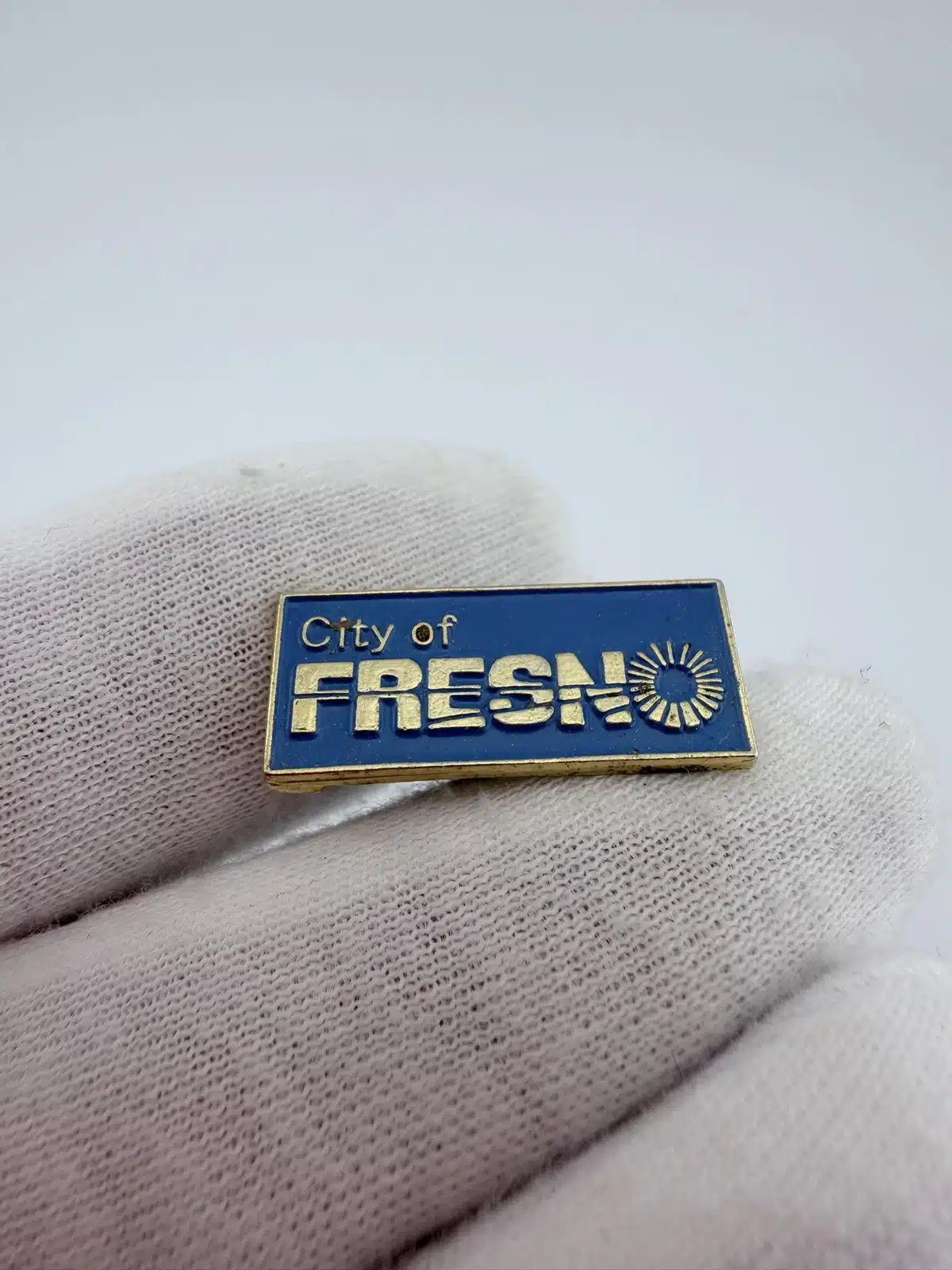 The City of Fresno is located in California’s Central Valley and serves as a major regional hub for agriculture, government, and commerce. Pin measures approximately 1 inch in width by 3/8 inch in height.