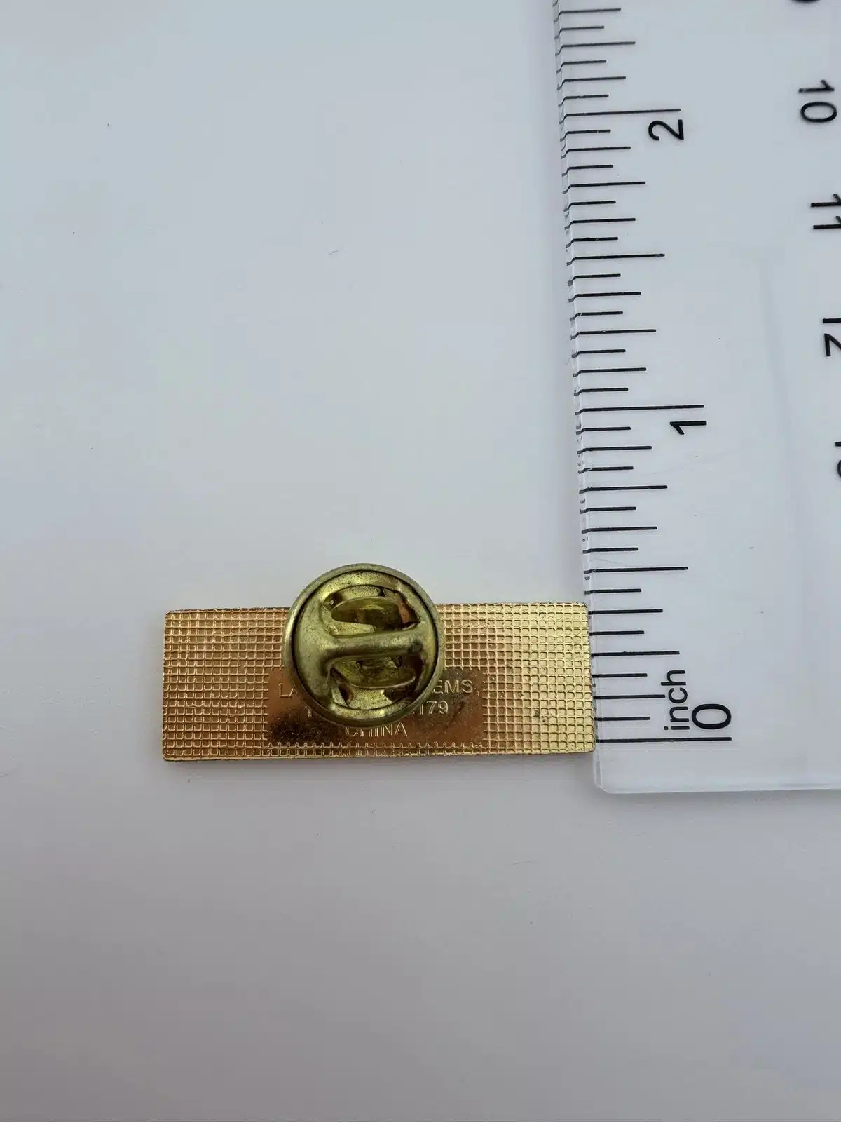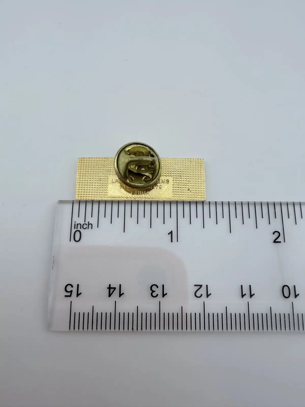 Pin measures approximately 1 1/4 inches in width by 3/8 inch in height.