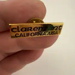 This Claremont, California lapel pin features a straightforward design with ‘Claremont California USA’ text prominently displayed.