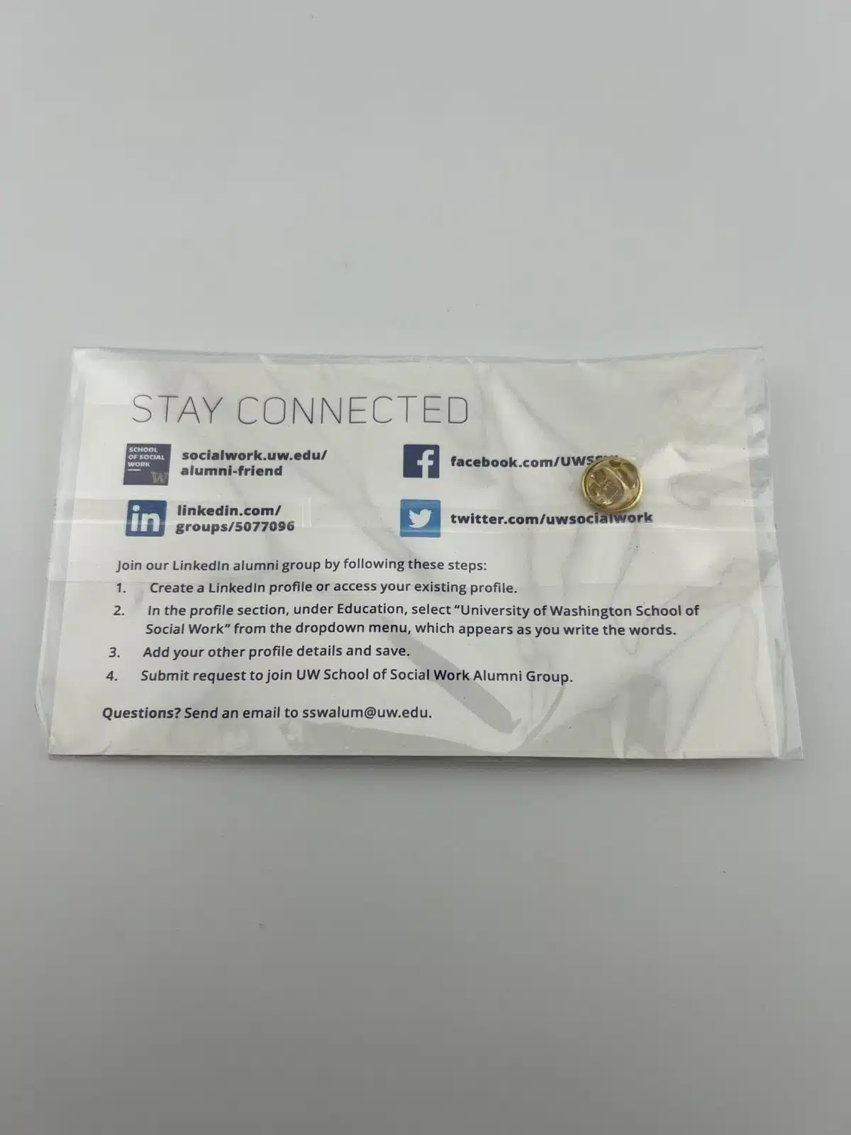 Class of 2017 University of Washington School of Social Work Lapel Pin