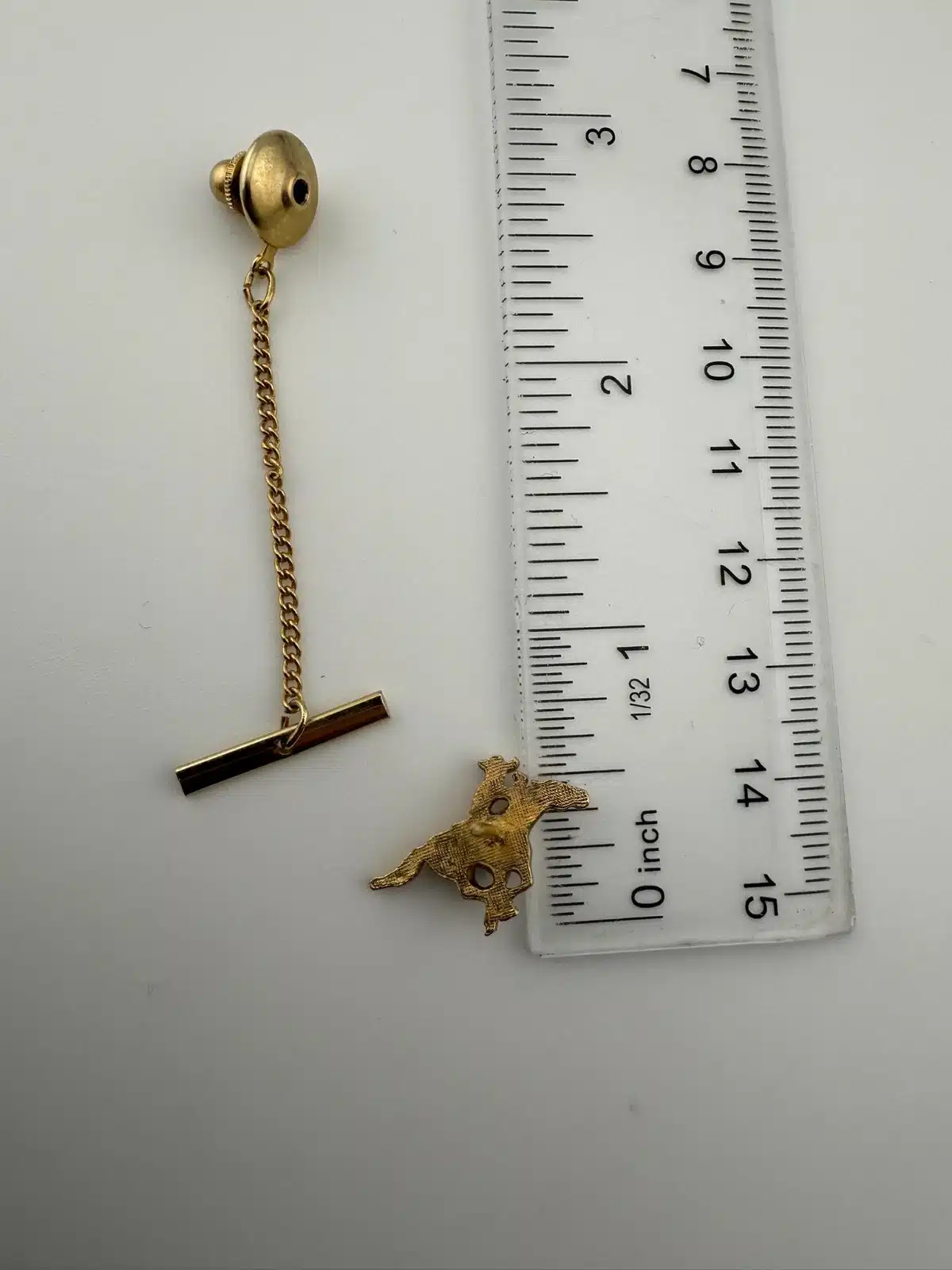Cowboy On Horse Tie Tack Pin With Chain / Bar – Gold Tone