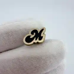 This unique pin is shaped like a Cursive letter “M” and is likely meant to be an initial or possibly the letter M from a specific brand. The small piece was produced by O.C. Tanner, a long-established American company known for recognition jewelry and service award items.