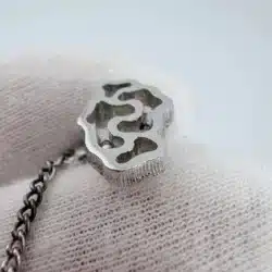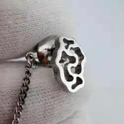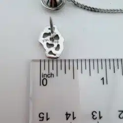 Crafted in sterling silver, the tie tack has a refined yet understated look that pairs well with both formal and business attire. It measures just over 1/4 inches in width and approximately 1/2 inches in height, giving it a compact profile while still showcasing its dimensional detail.