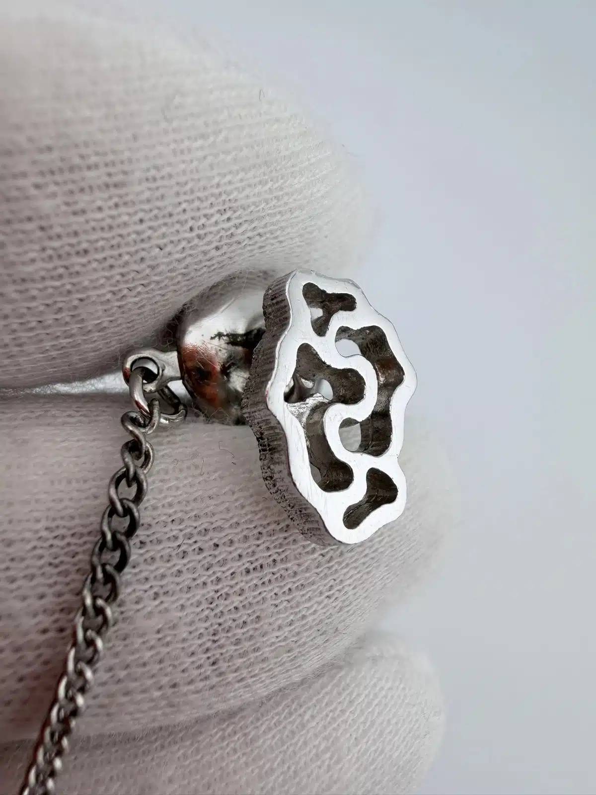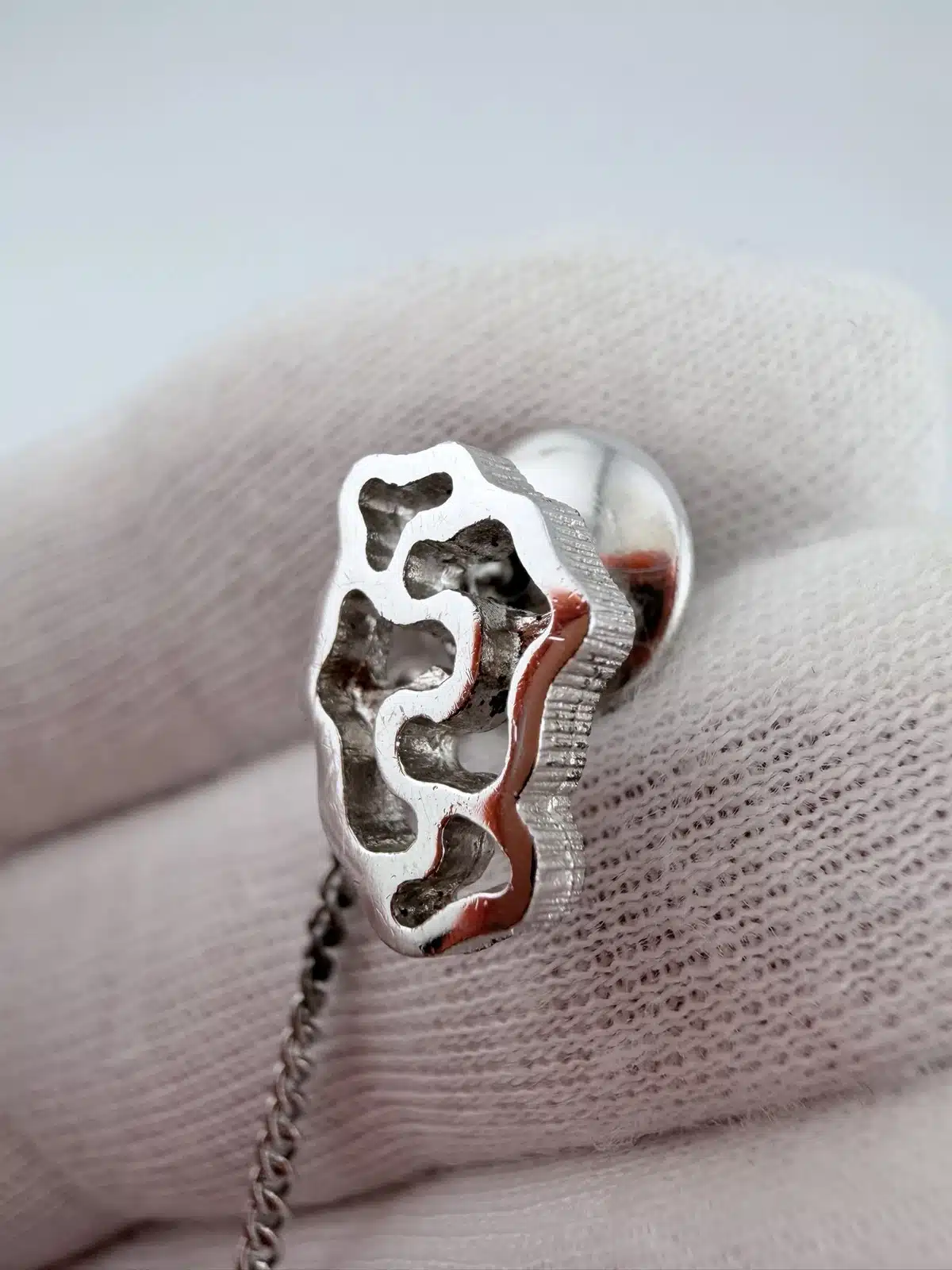 Dolan Bullock also produced cufflinks in this same design, and possibly additional coordinating jewelry pieces, making this tie tack part of a broader artistic series.