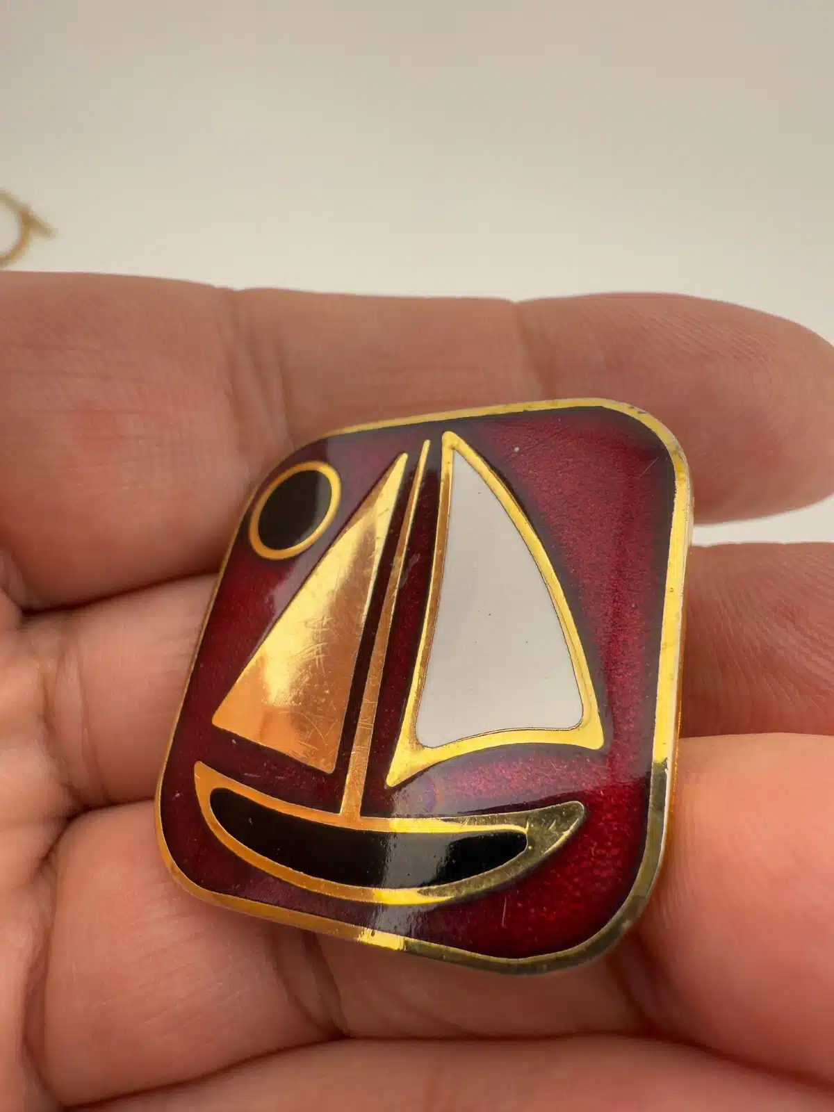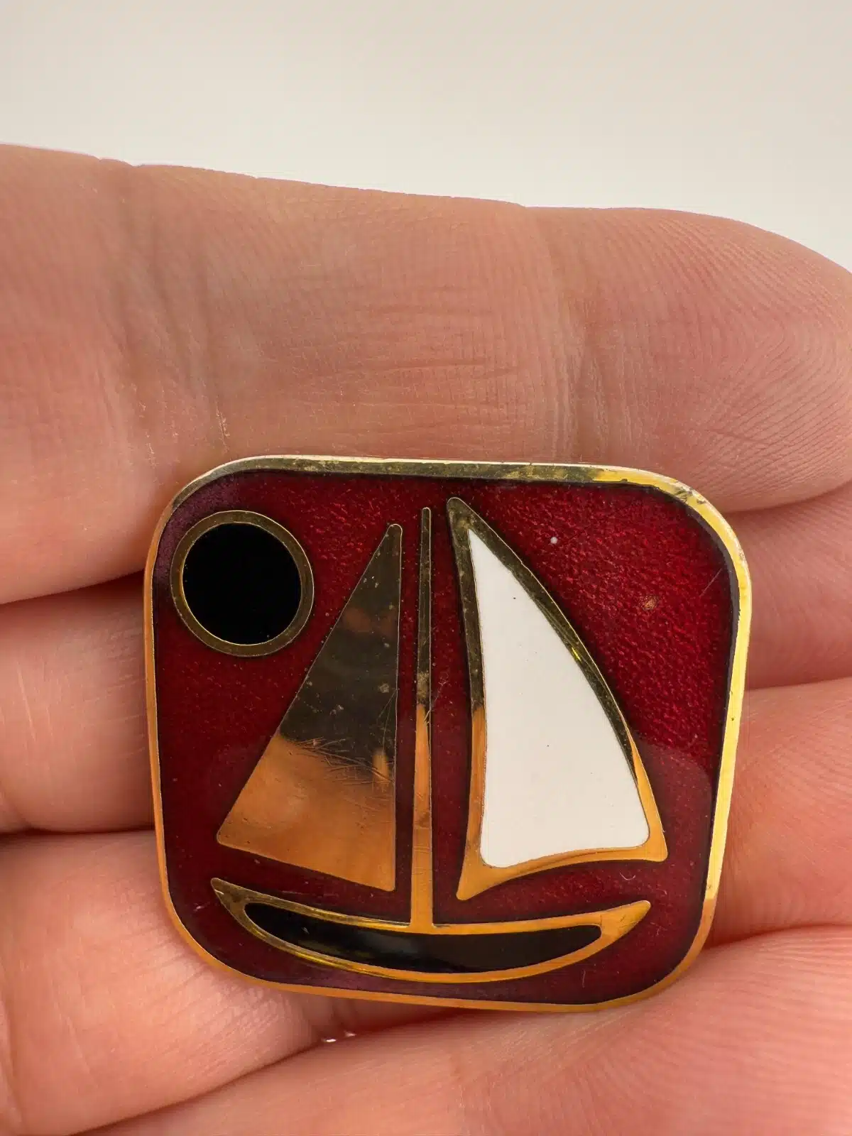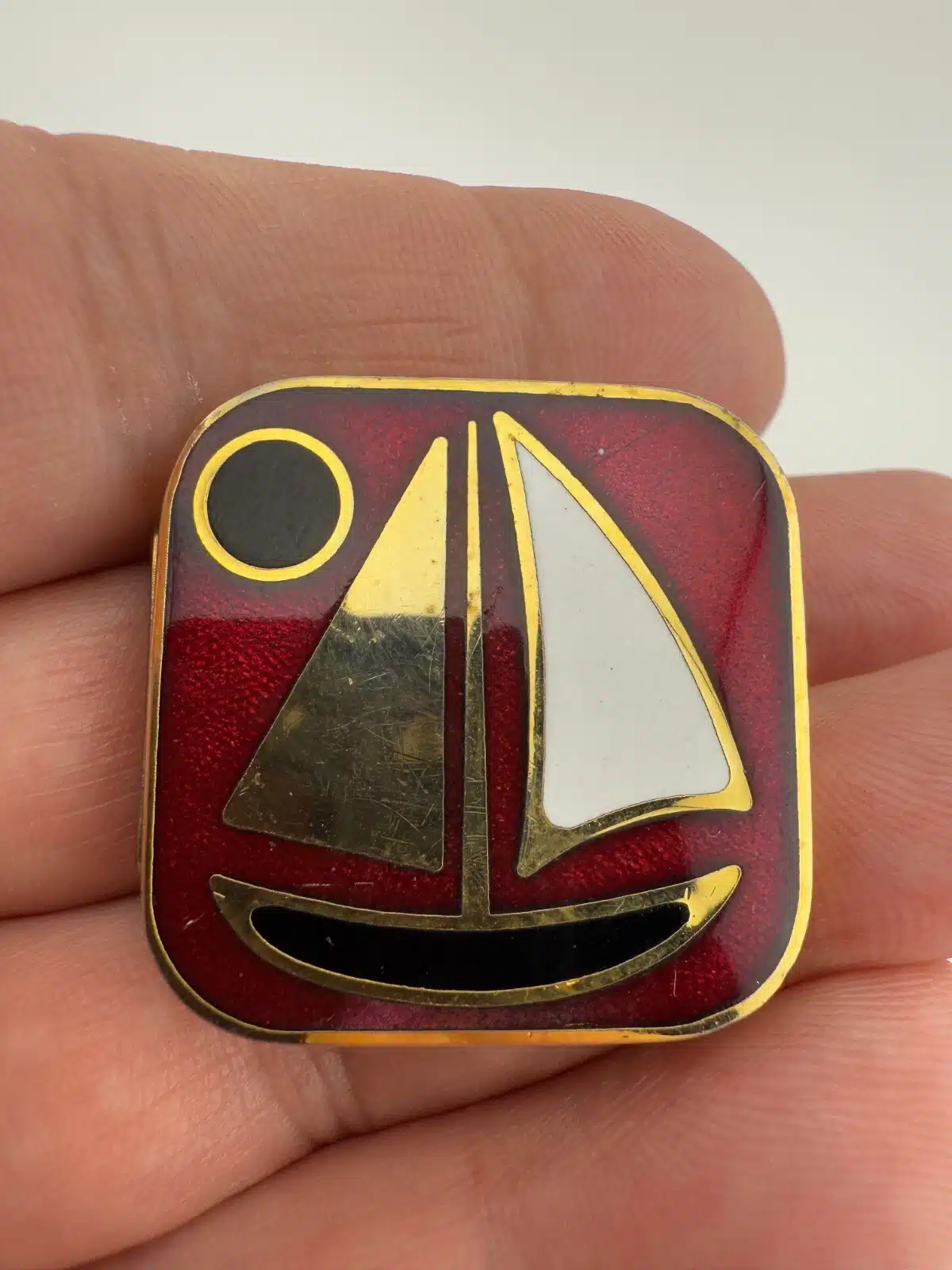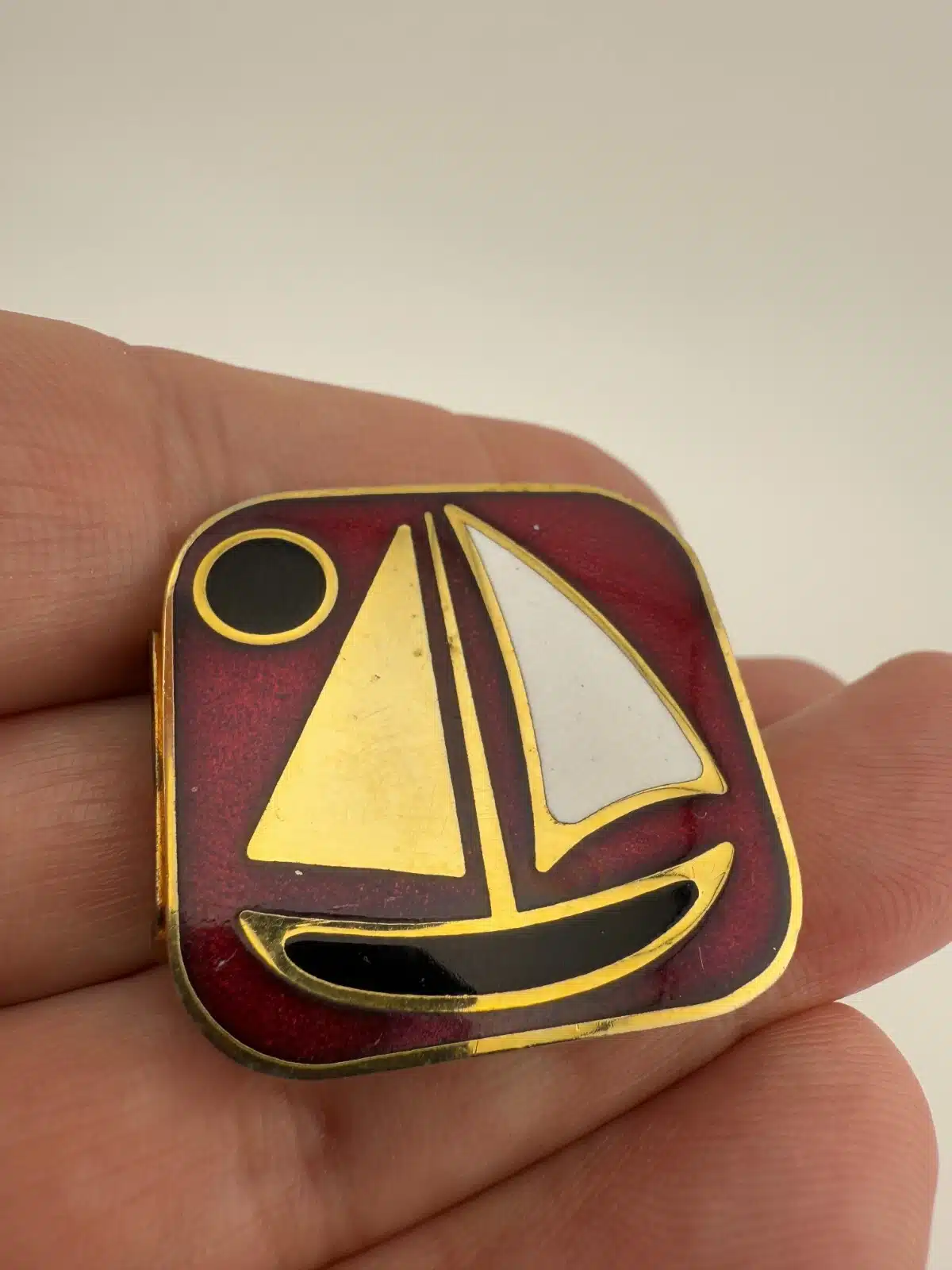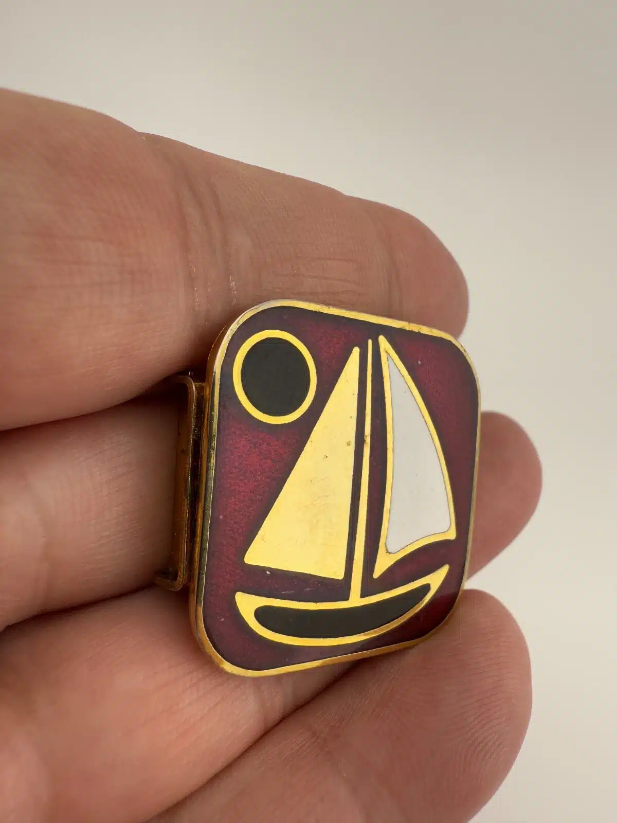 De Passille Sylvestre Sailing Boat & Sun Square Enamel Belt Buckle