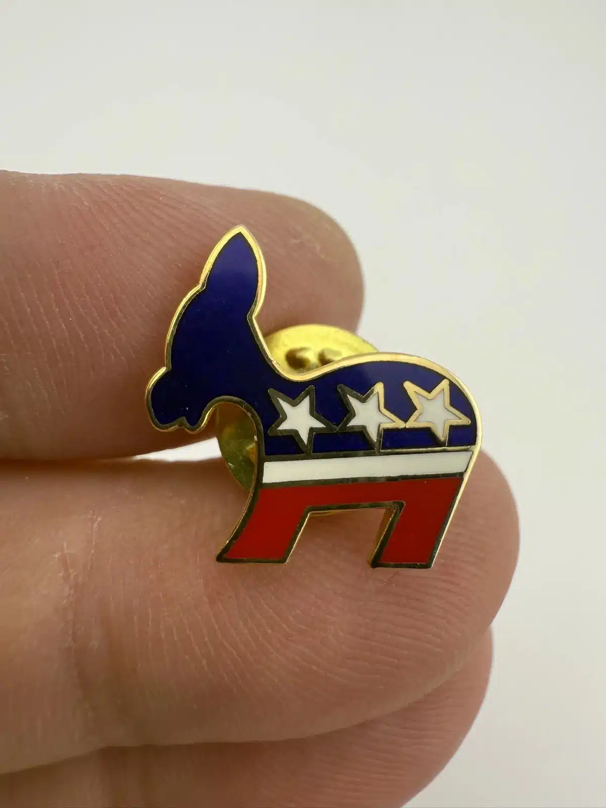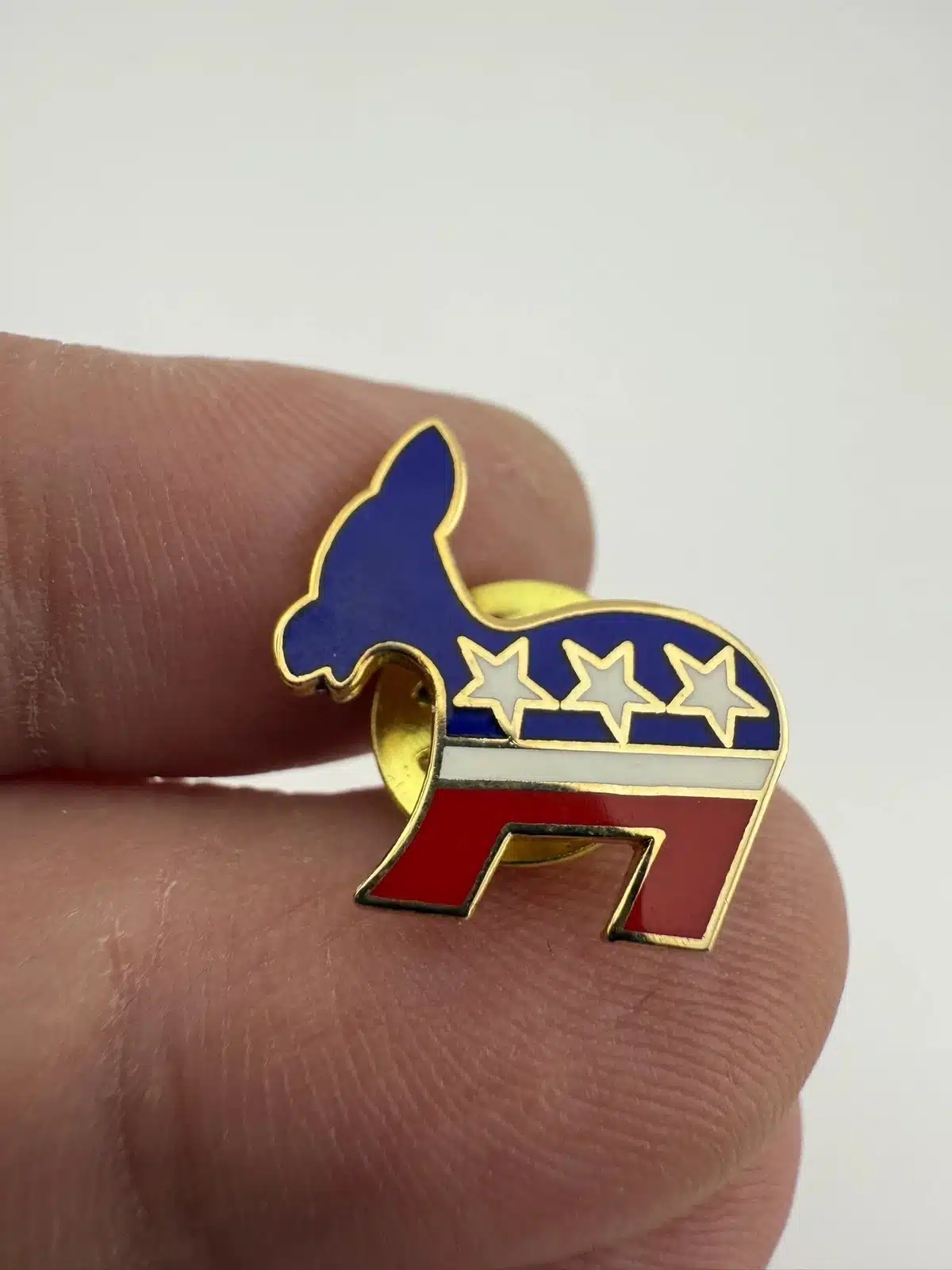 Democratic Party Donkey Logo Pin – Red, White, And Blue Enamel, 3 Stars