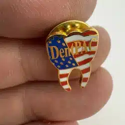 DentPac tooth shaped enamel pin with the flag of the United States. Likely a political action committee for either Washington state or elsewhere. Last one of this pin that I have.