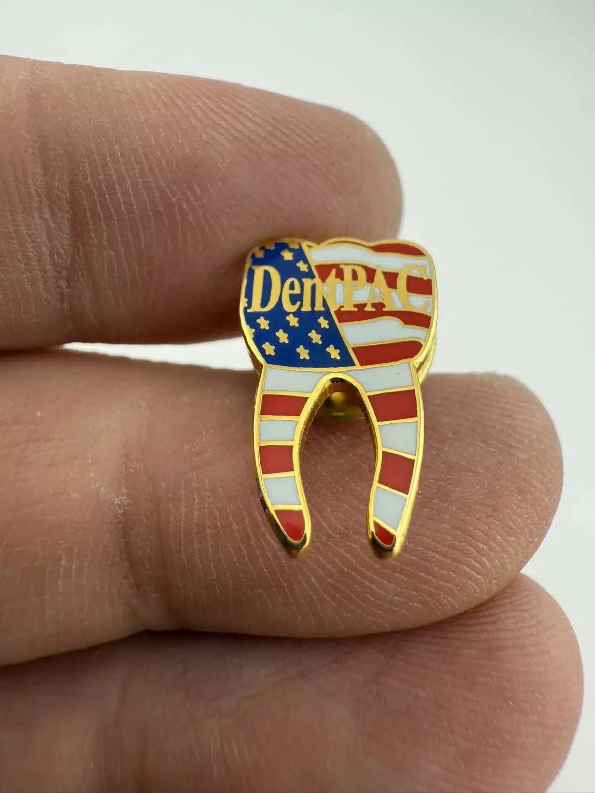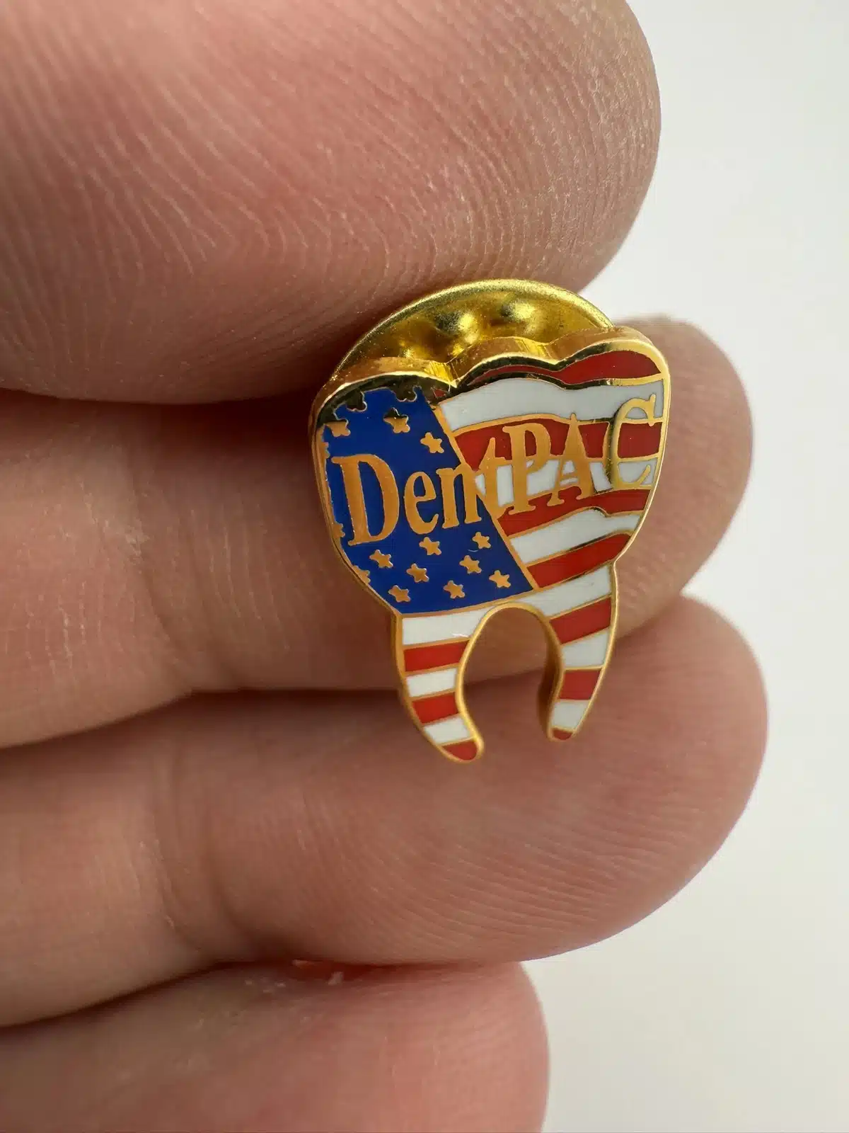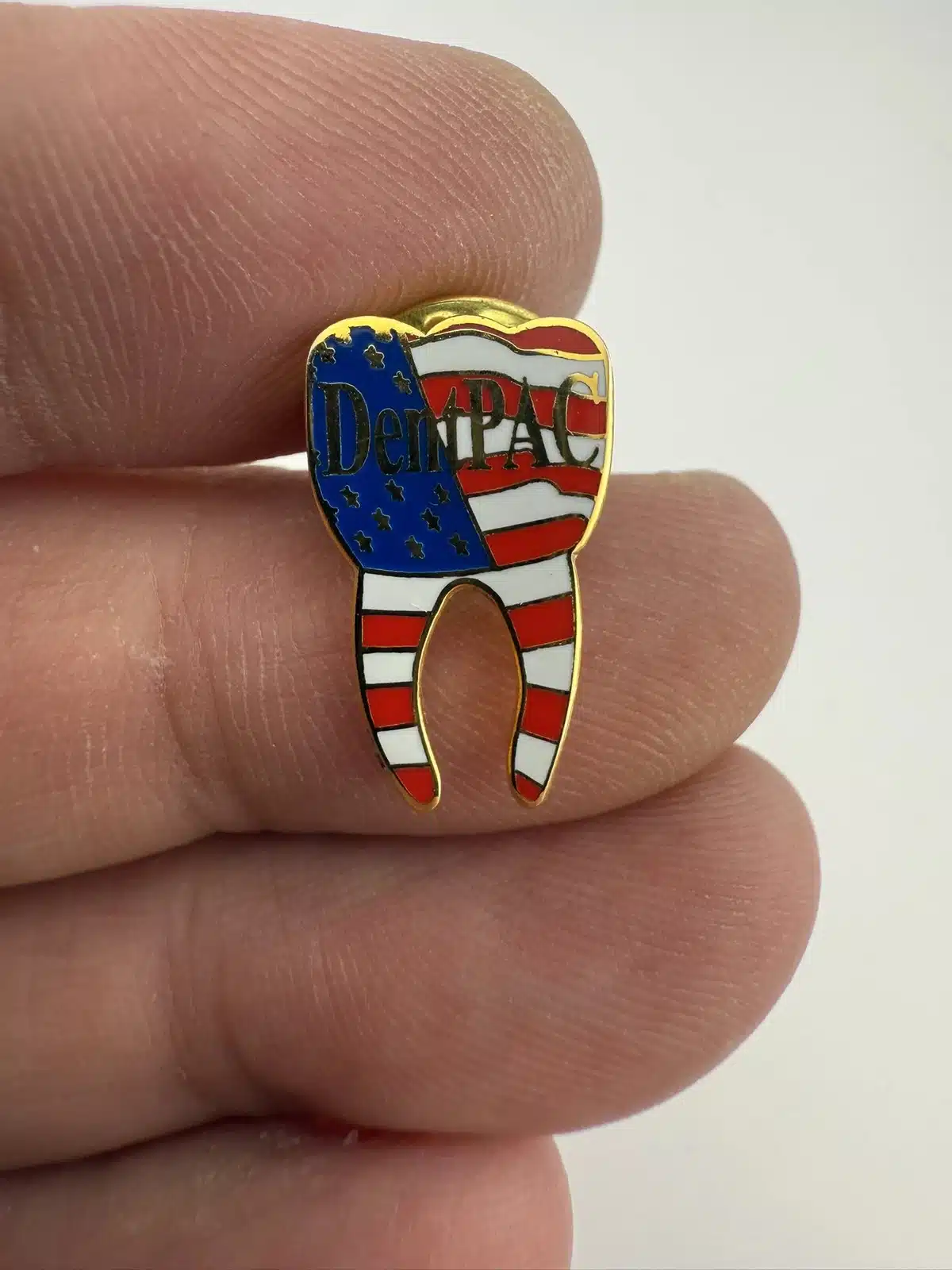 DentPac tooth shaped enamel pin with the flag of the United States. Likely a political action committee for either Washington state or elsewhere. Last one of this pin that I have.