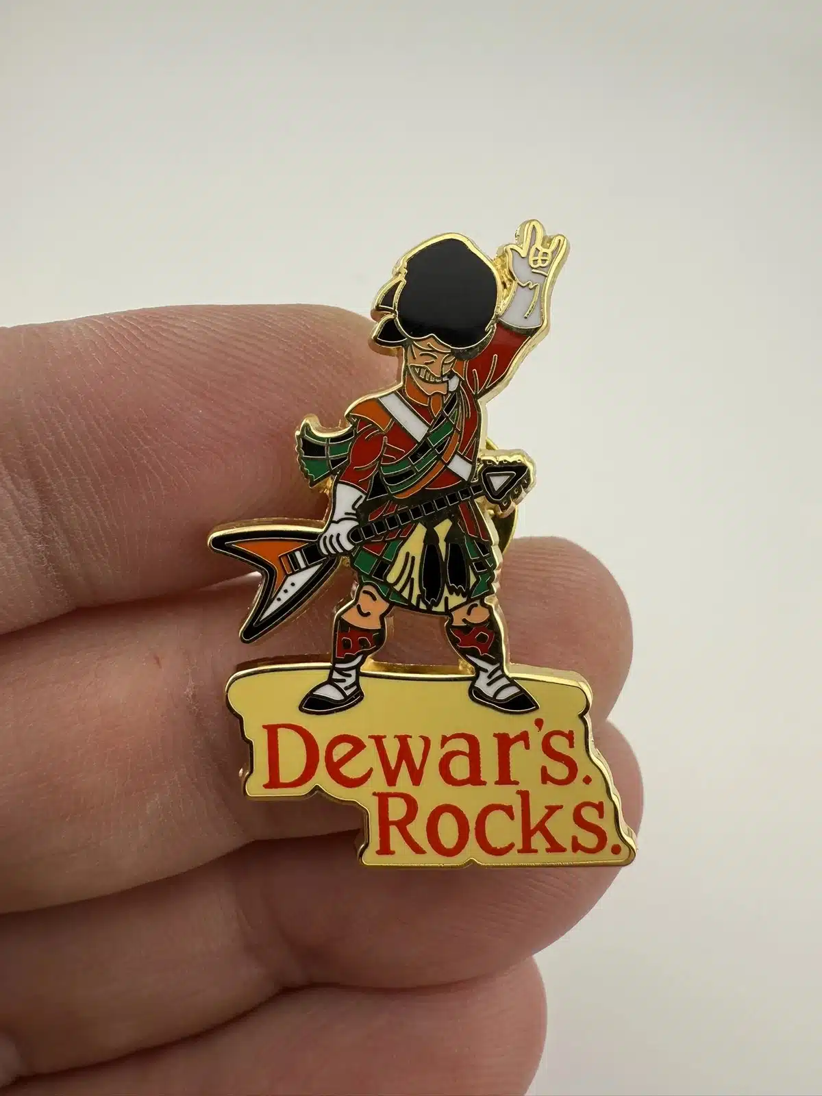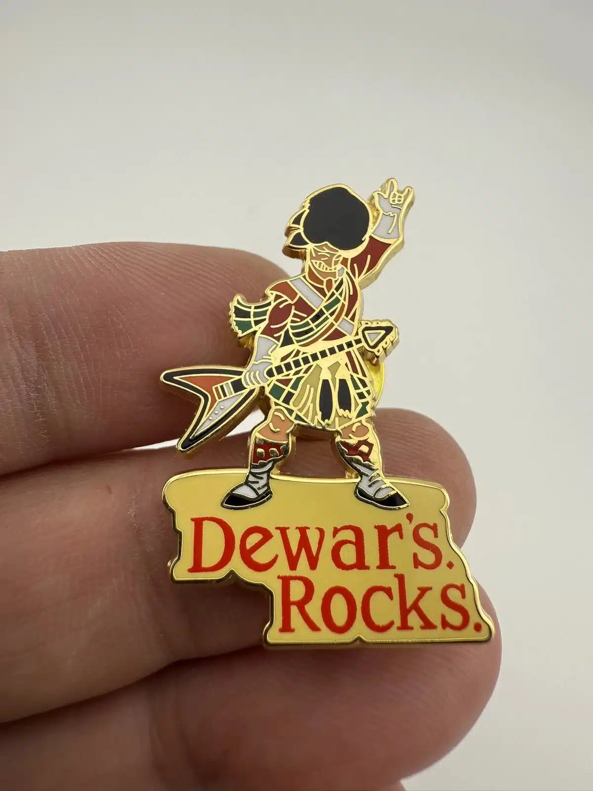 Dewar’s Rocks Scotsman In Kilt With Guitar Lapel Hat Pin