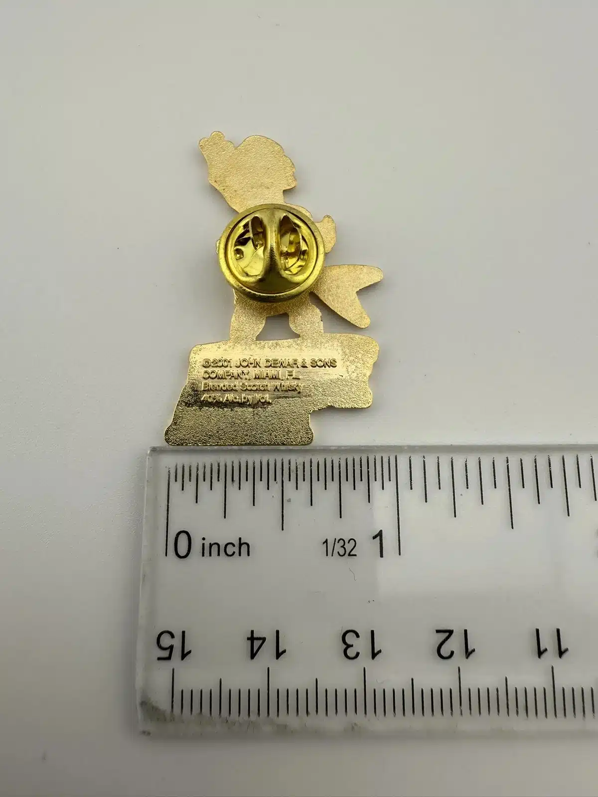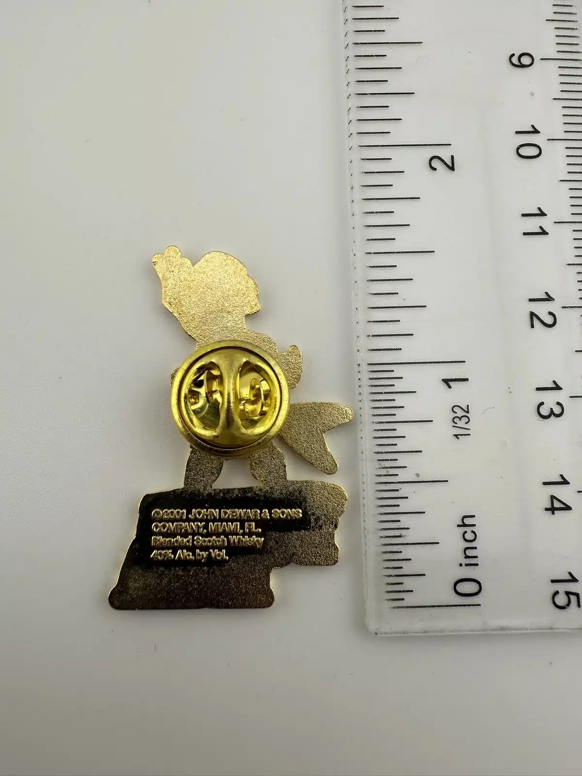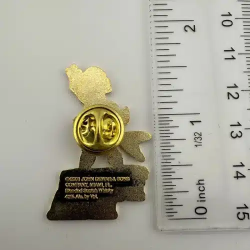 This lapel hat pin features a Scotsman in a traditional kilt, expertly crafted with intricate detailing, holding a guitar that symbolizes Scottish musical heritage. The pin is a tribute to Dewar’s, a renowned Scotch whisky brand, reflecting the brand’s deep roots in Scottish culture and its celebration of local artistry.