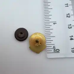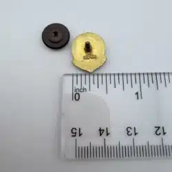 Marked 1/10 10K GF and stamped “L.S.” on the rear, the pin measures approximately 1/2 inch in width by just over 1/2 inch in height.