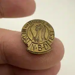 I believe this is a bronze award from NBD – The Dutch Association of Dance Teachers. Item has an open style rear clasp.