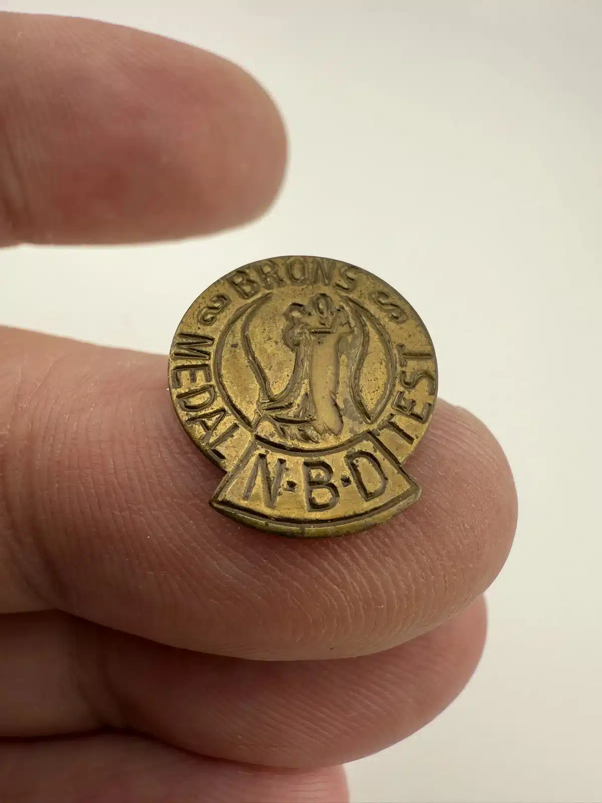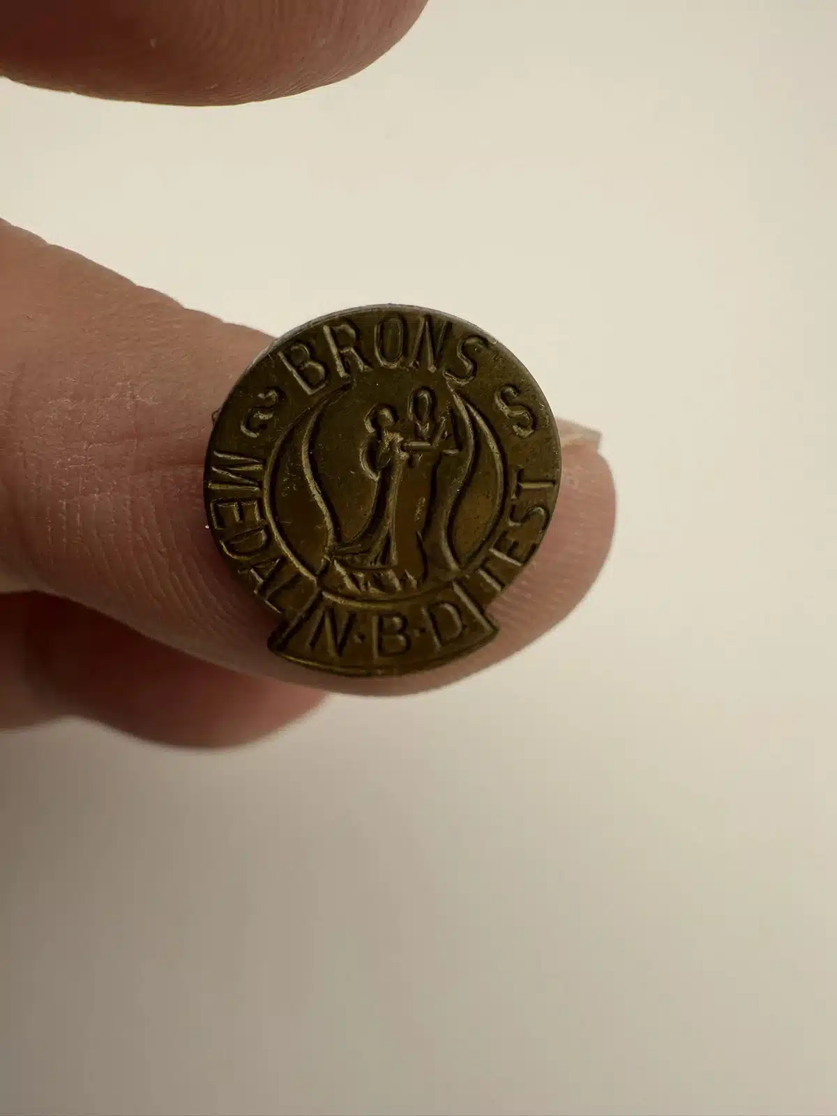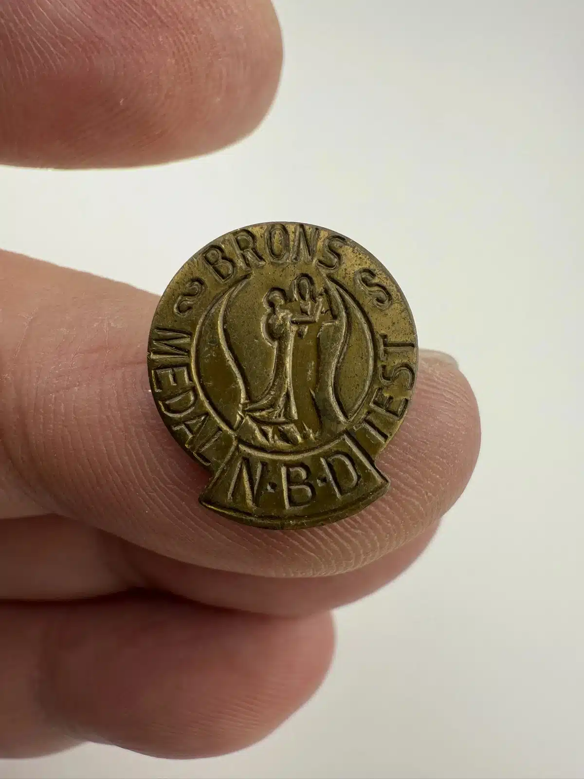 I believe this is a bronze award from NBD – The Dutch Association of Dance Teachers. Item has an open style rear clasp.