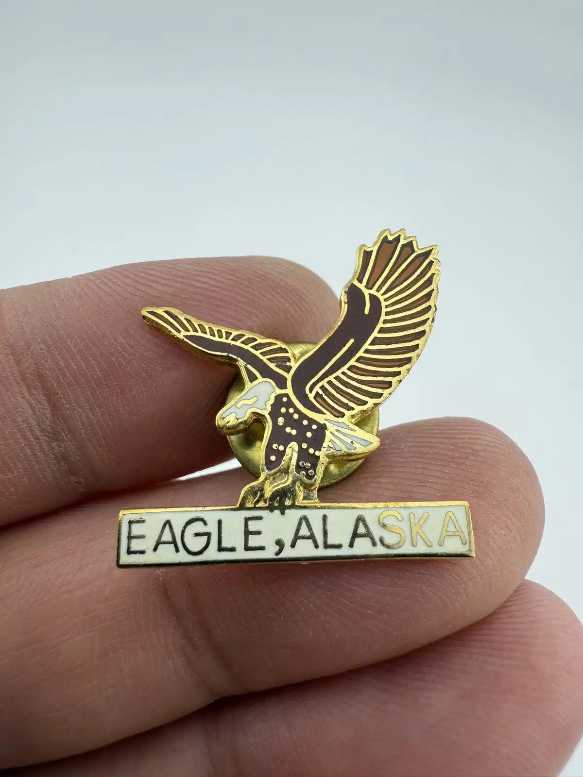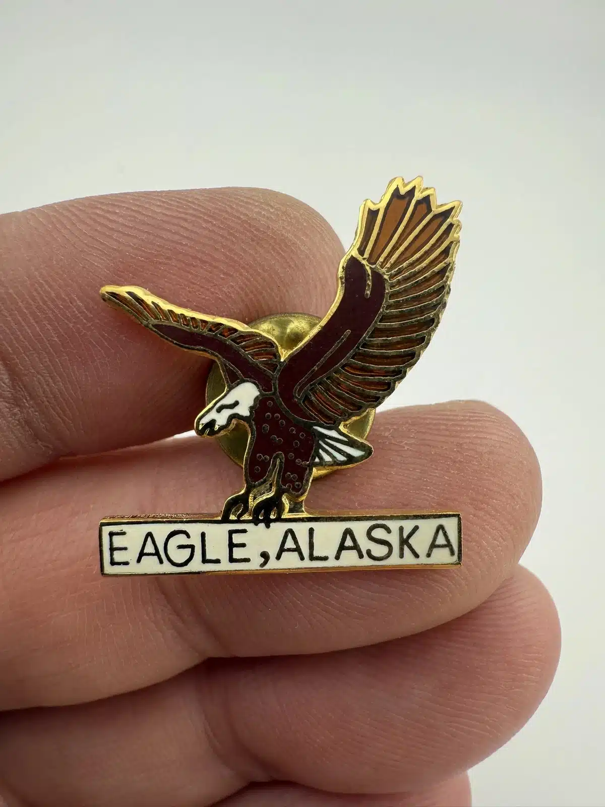 Travel pin from a small town in Alaska called Eagle. Obviously this pin prominently features an eagle.