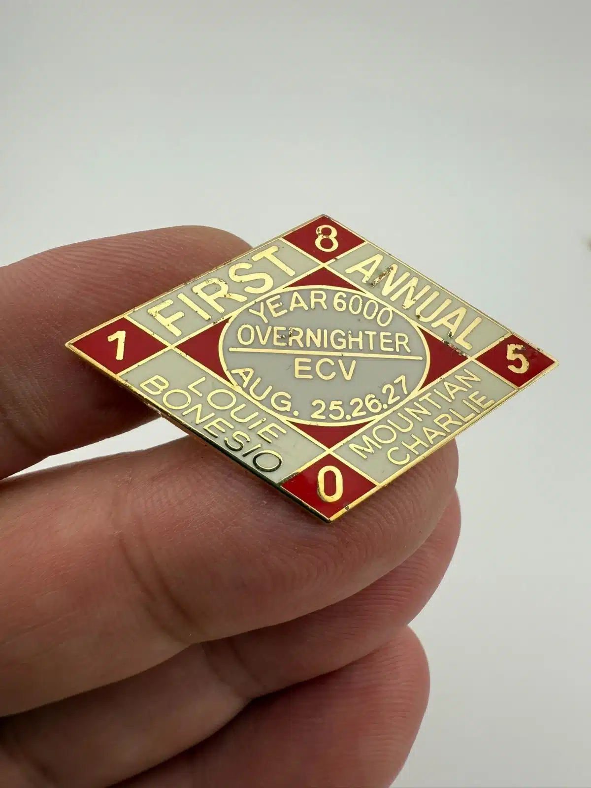 ECV E Clampus Vitus First Annual Overnighter Mountain Charlie 1850 Screwback Pin