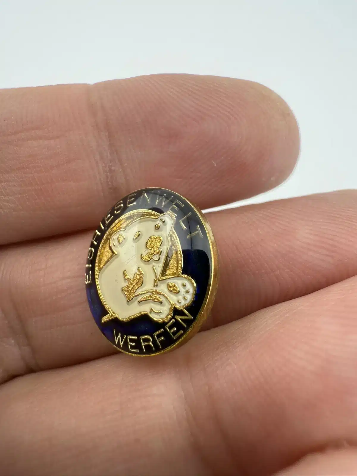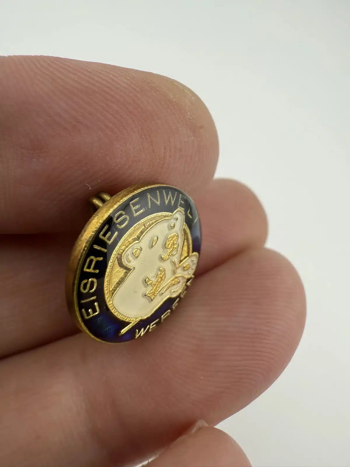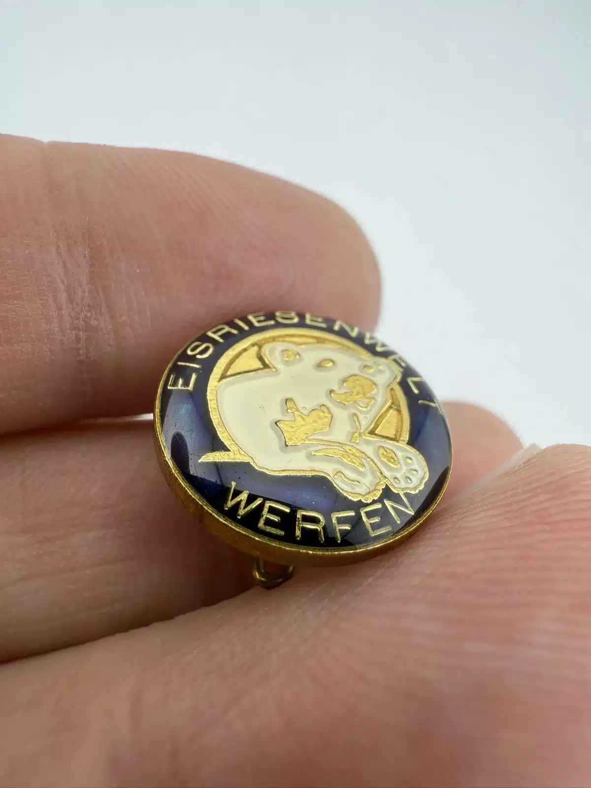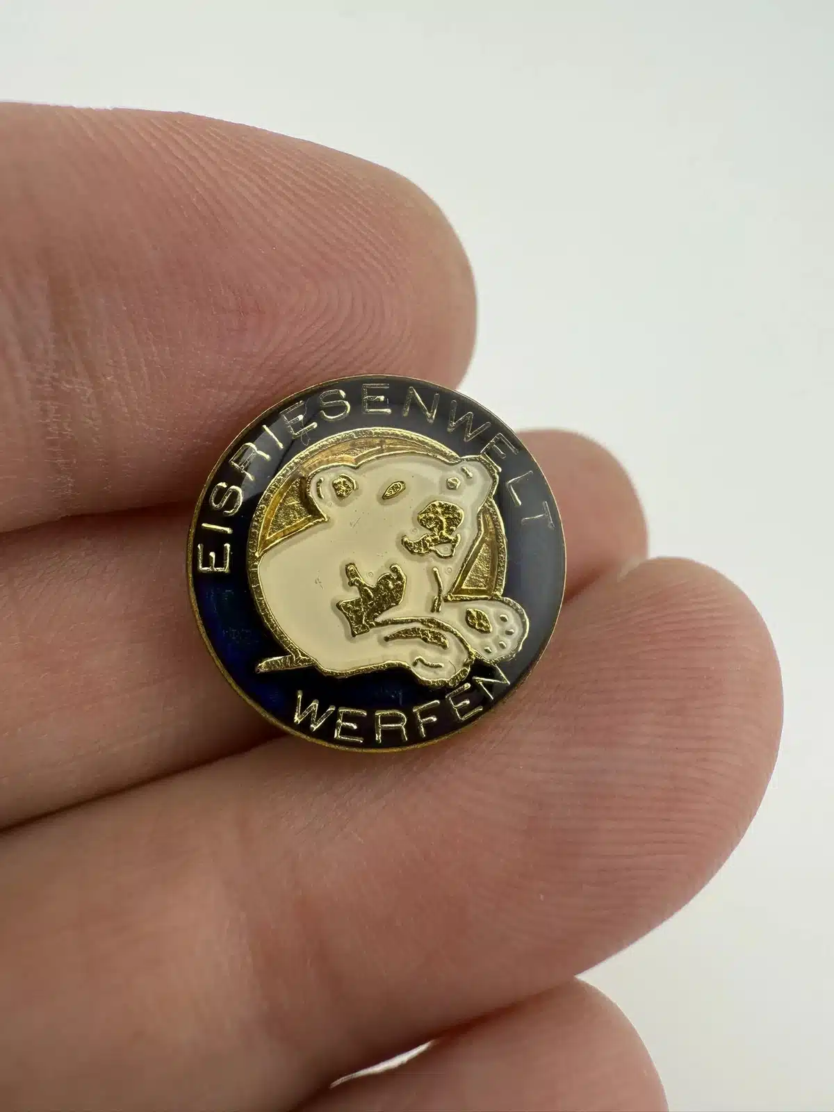 This lapel pin features a friendly depiction of a polar bear, likely symbolizing the ice formation at Eisriesenwelt in Werfen Australia that looks like a polar bear. The caves, known for their impressive ice formations, are a UNESCO World Heritage site and attract visitors with their breathtaking glacial landscapes.