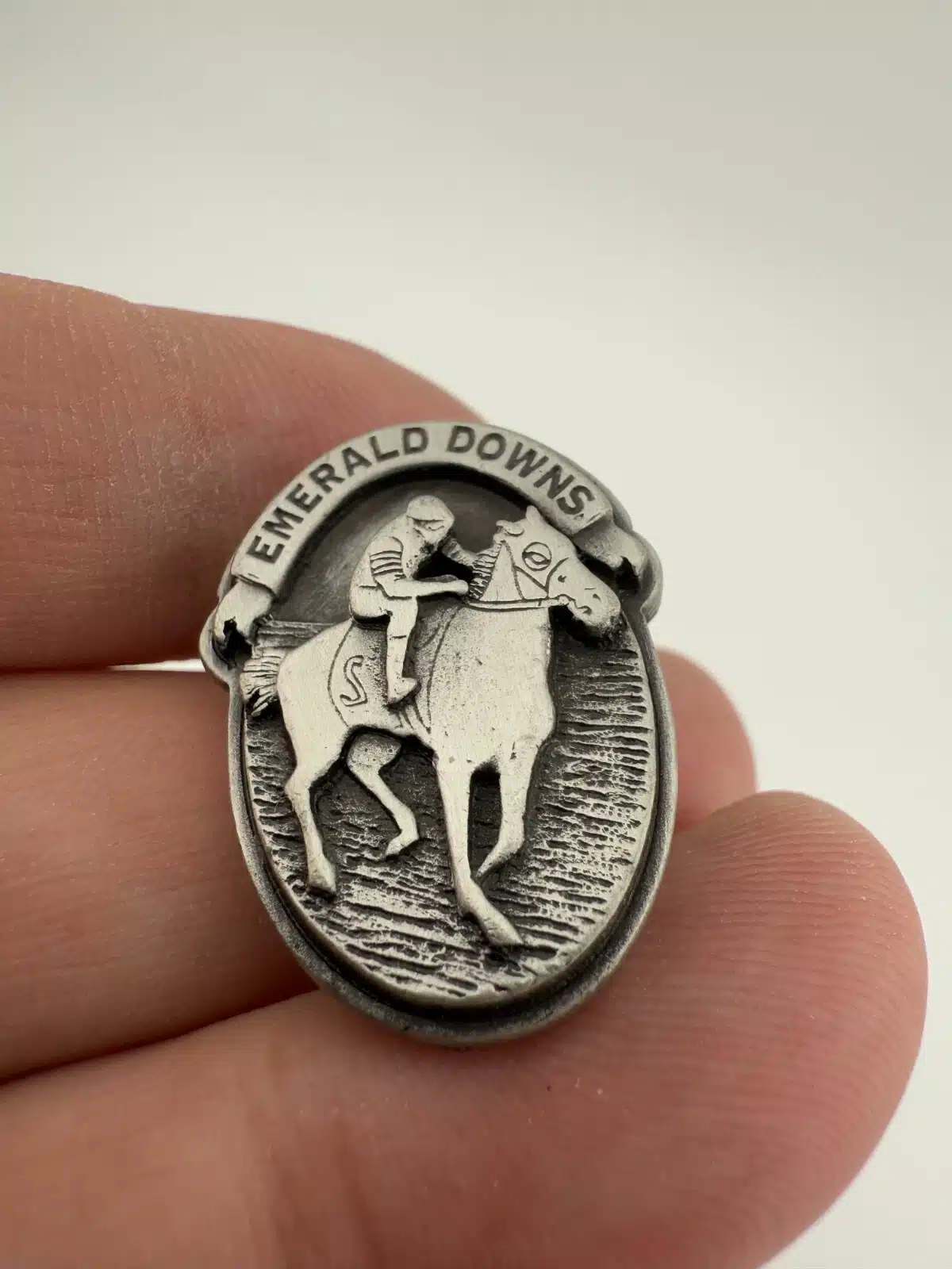 Emerald Downs Lapel Hat Pin – Horse Racing – Silver Tone Pewter by Michaels Co.