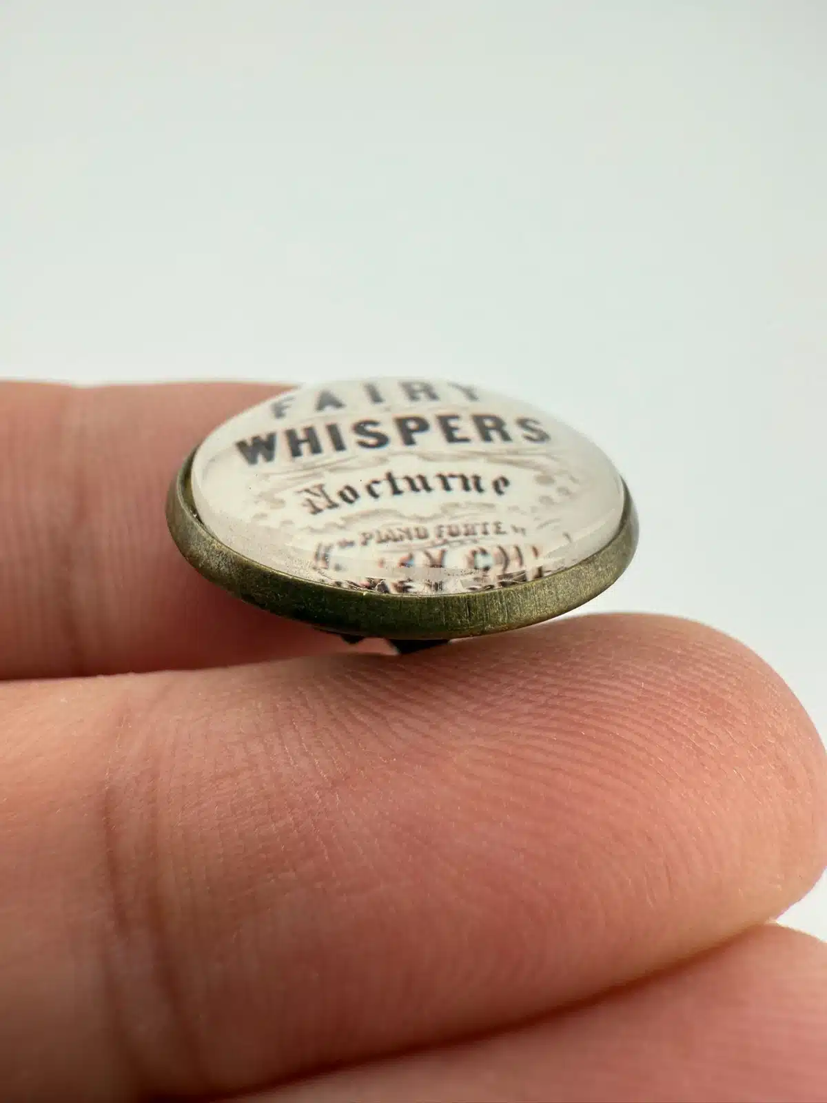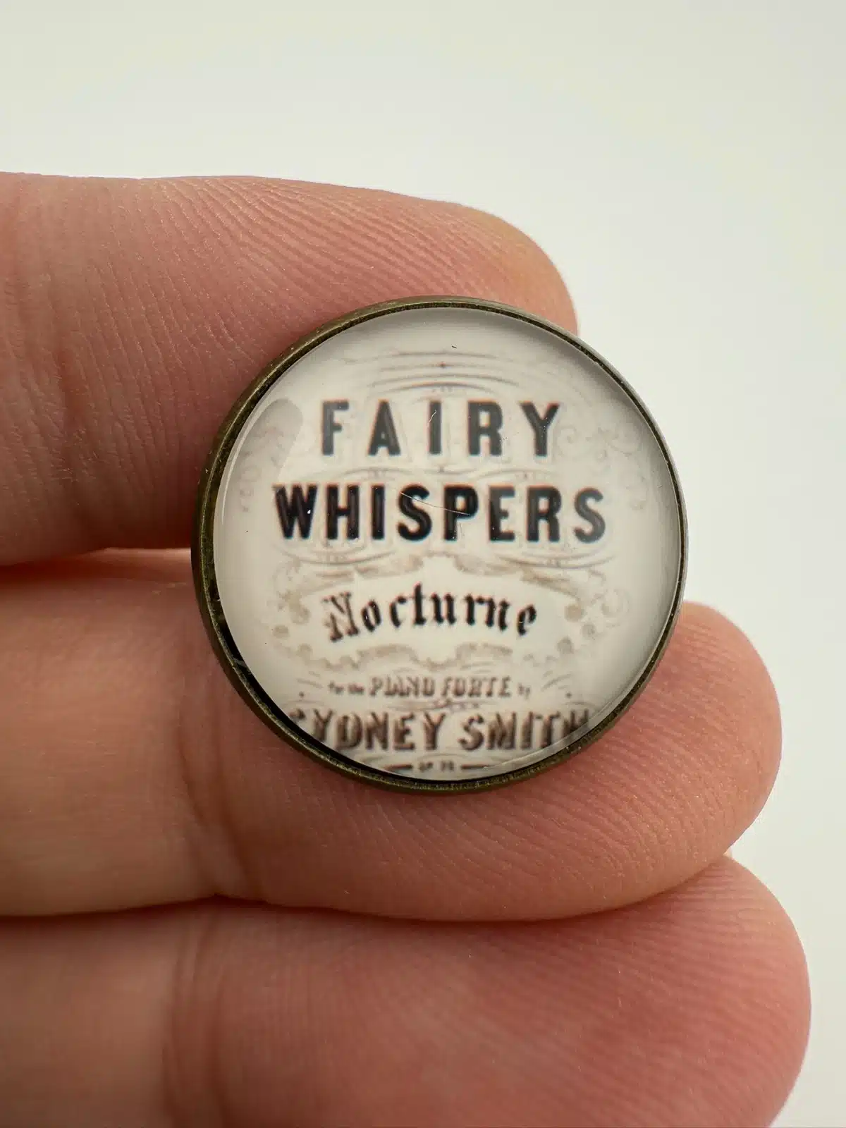 Unique pin featuring the text Fairy Whispers Nocturne, a title associated with a piano piece by composer Sydney Smith.