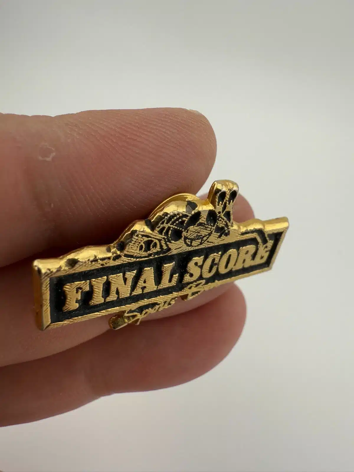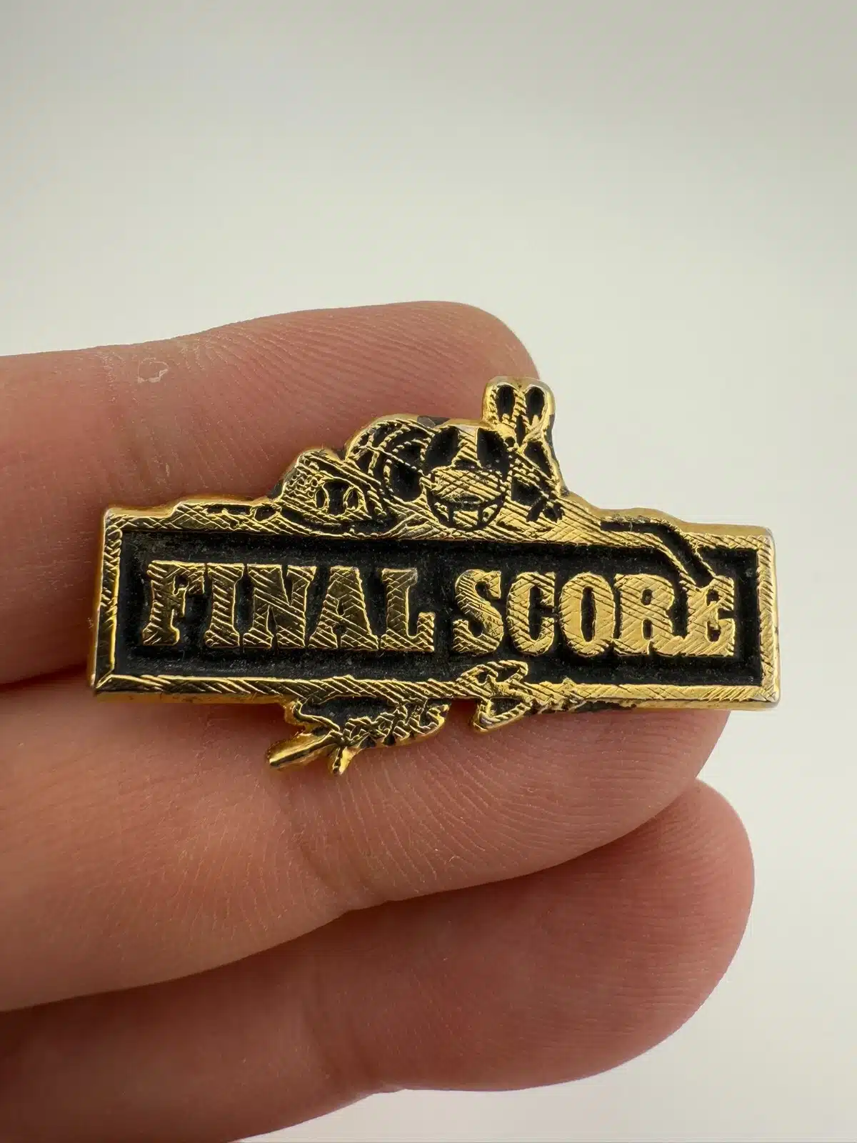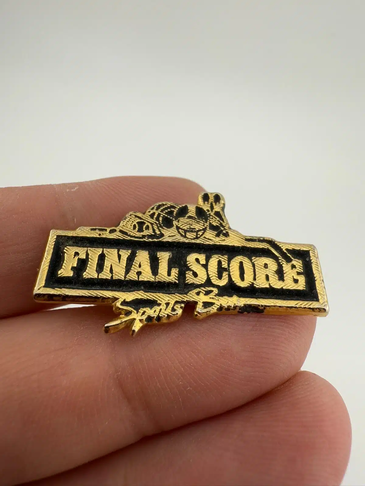 Final Score Sports Bar Pin with Baseball, Basketball, Helmet, and Pins at Top