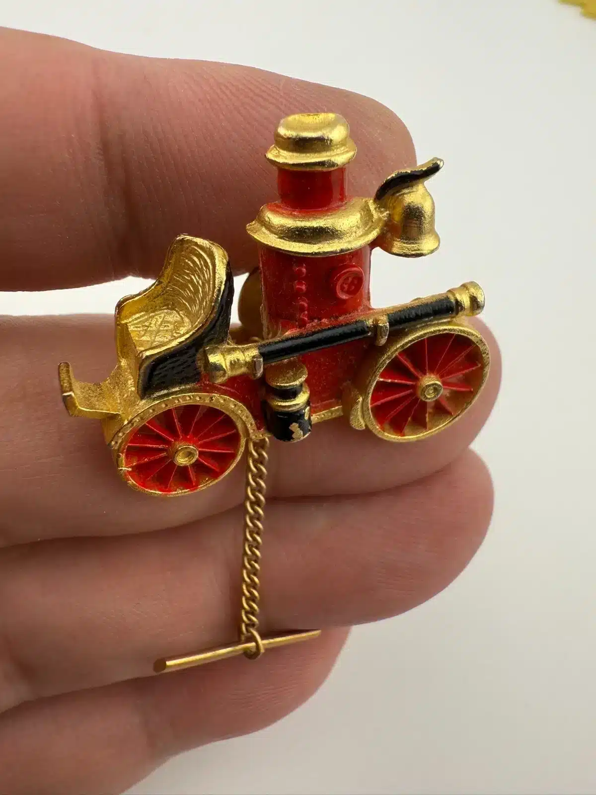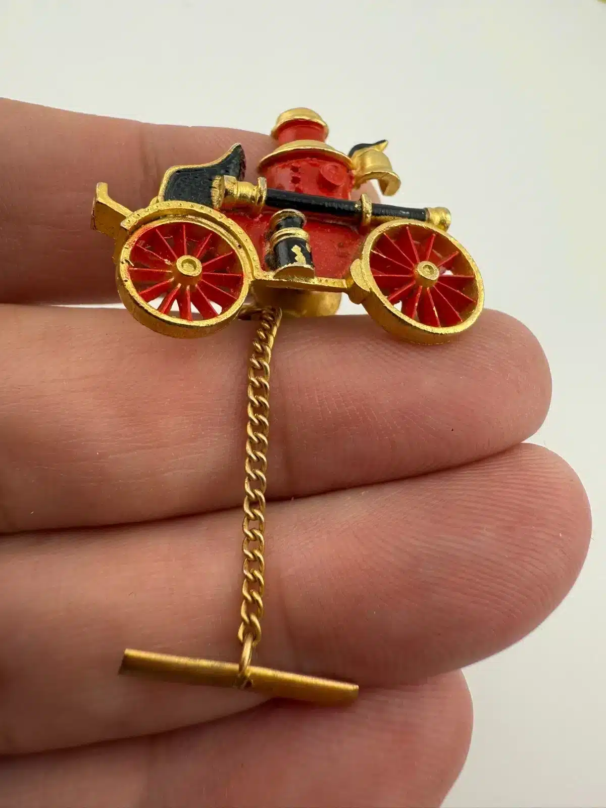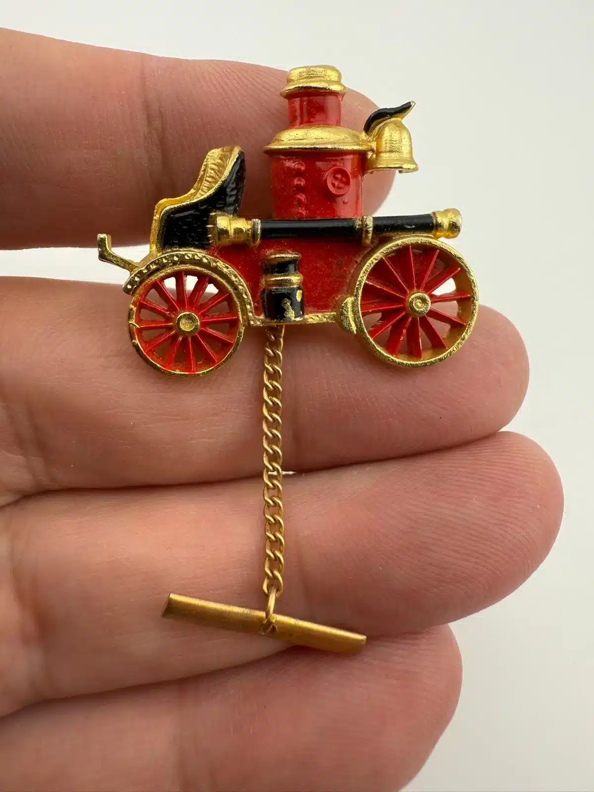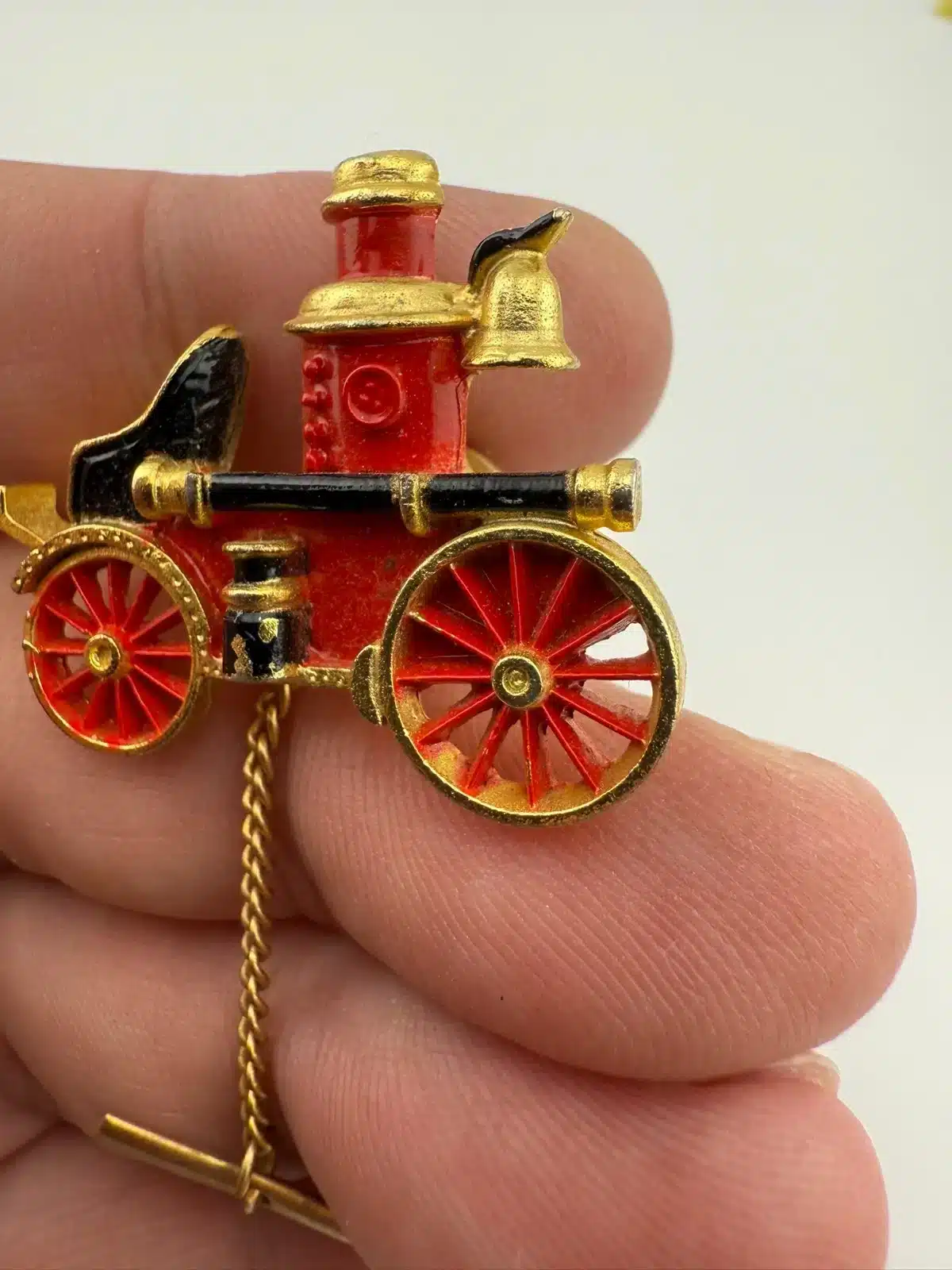 Fire Pumper Wagon Tie Tack Pin with Chain – *paint loss*