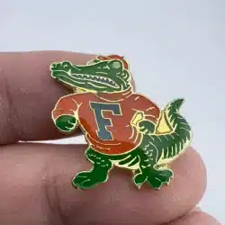 This pin features Albert the Alligator, the official mascot of the University of Florida, depicted in vibrant colors that reflect the school’s spirit. The design captures the essence of collegiate pride, making it a notable piece for fans of the Florida Gators.