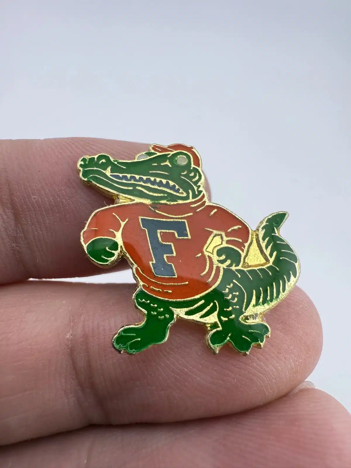 This pin features Albert the Alligator, the official mascot of the University of Florida, depicted in vibrant colors that reflect the school’s spirit. The design captures the essence of collegiate pride, making it a notable piece for fans of the Florida Gators.