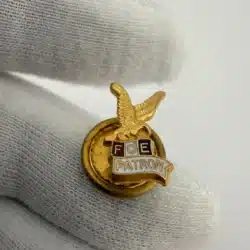 This FOE Fraternal Order of Eagles Patrol screwback pin features intricate detailing associated with the organization, showcasing the emblematic eagle that symbolizes the fraternity’s commitment to community service and fellowship. Crafted by Robbins Co, a recognized name in the pin-making industry, this piece represents the rich history of the Fraternal Order of Eagles, founded in 1898, which has played a significant role in American social and charitable efforts.