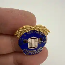 This 25-year member pin features the Model A Restorers Club logo, prominently displaying the iconic Model A silhouette, symbolizing a rich history of automotive restoration. Beautiful pin with all the detail and enamel.