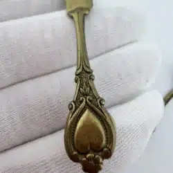 This charming pin set features a fork, knife, and spoon, each showcasing an aged finish that adds a vintage appeal. The design celebrates the classic dining utensils, reflecting a nostalgic connection to culinary traditions and mealtime gatherings.