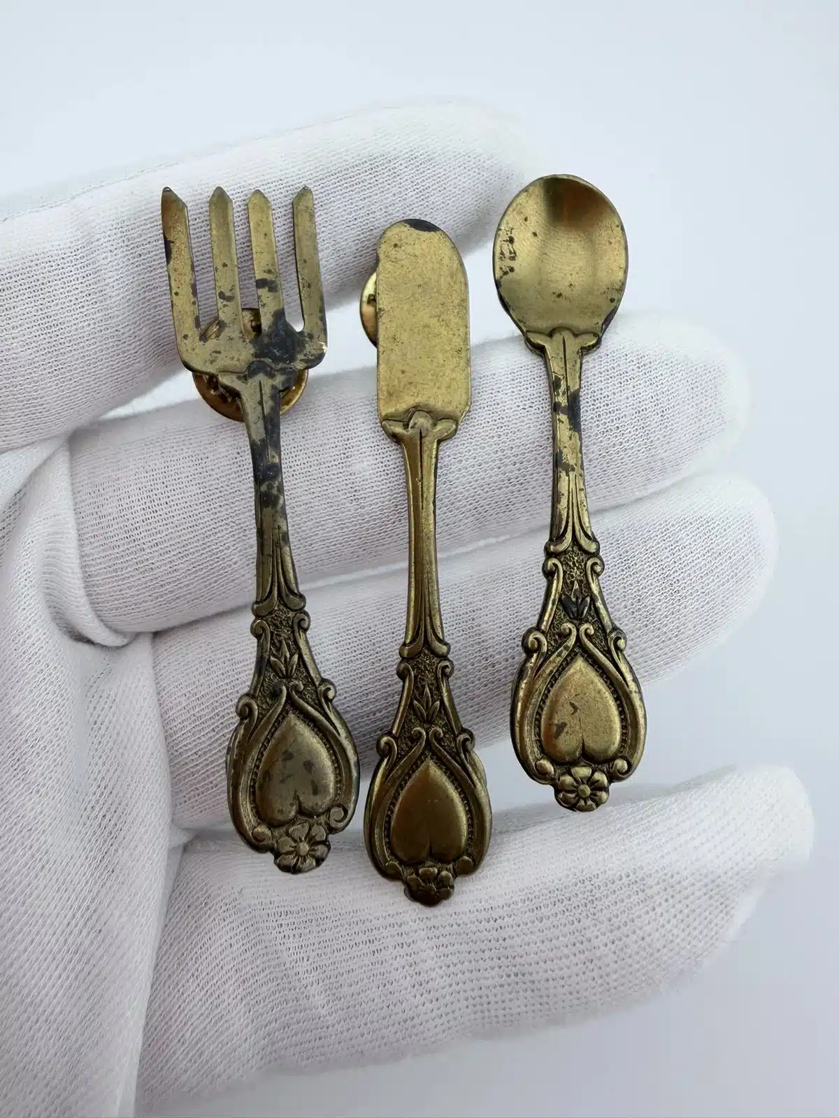 Fork, Knife and Spoon Pin Set – Aged / Marks