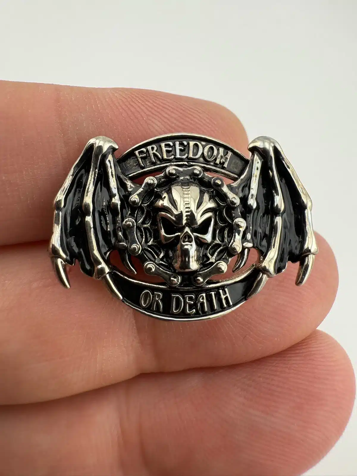 Freedom Or Death Pin with Skull, Motorcycle Chain, Wings by ATC LLC