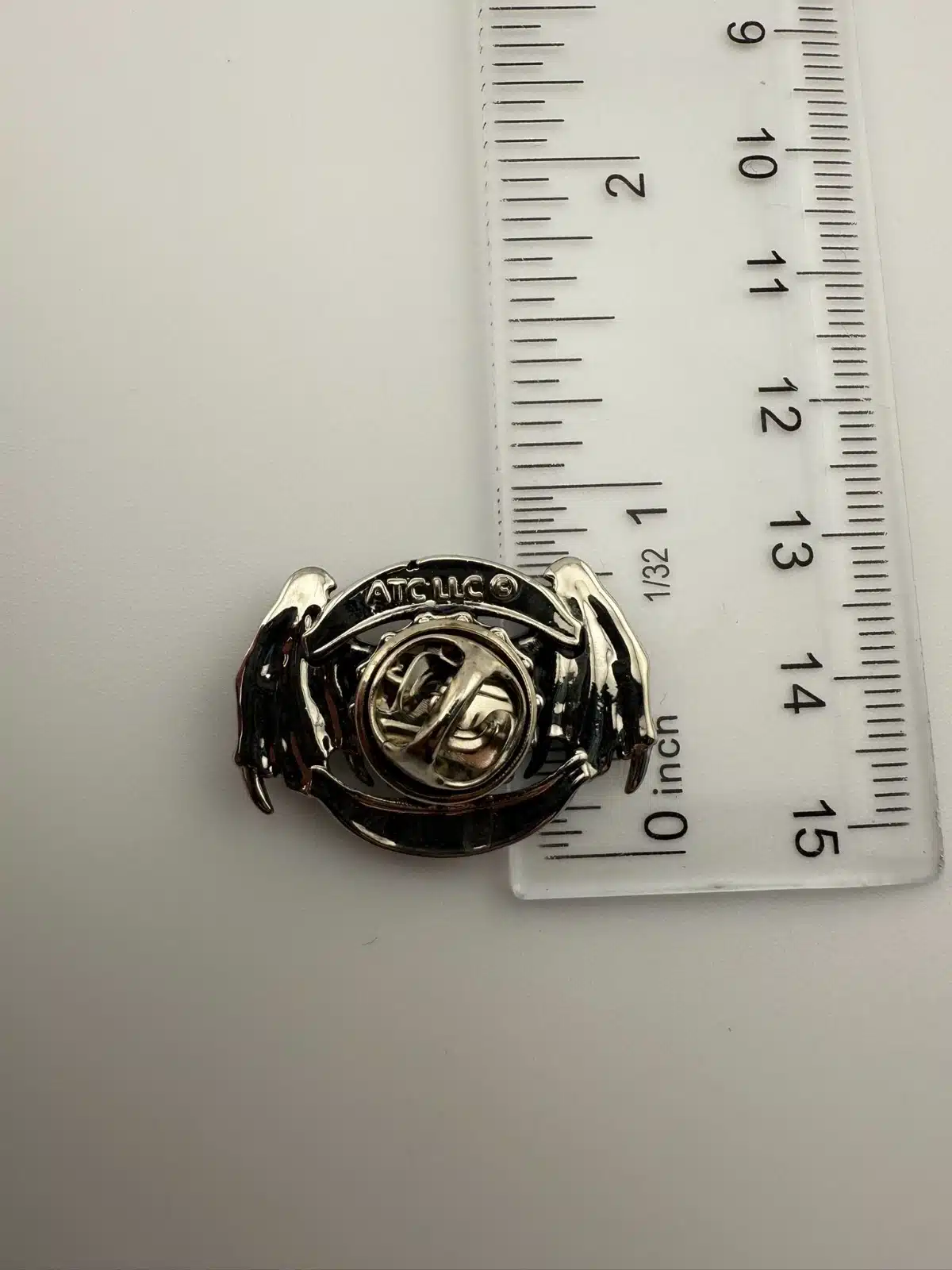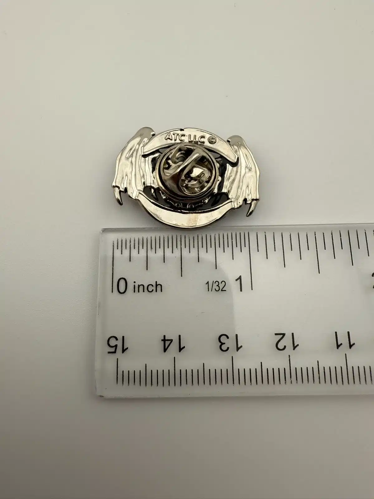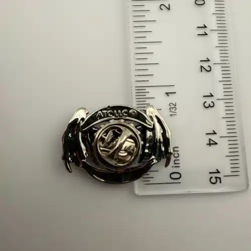 Produced by ATC LLC, this piece reflects motorcycle and biker-inspired themes that often incorporate skull imagery, chains, and wings as symbols of independence and rebellion. Pin measures just over 1 inch in width by just over 3/4 inch in height.