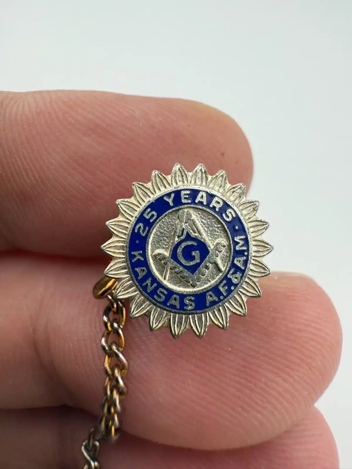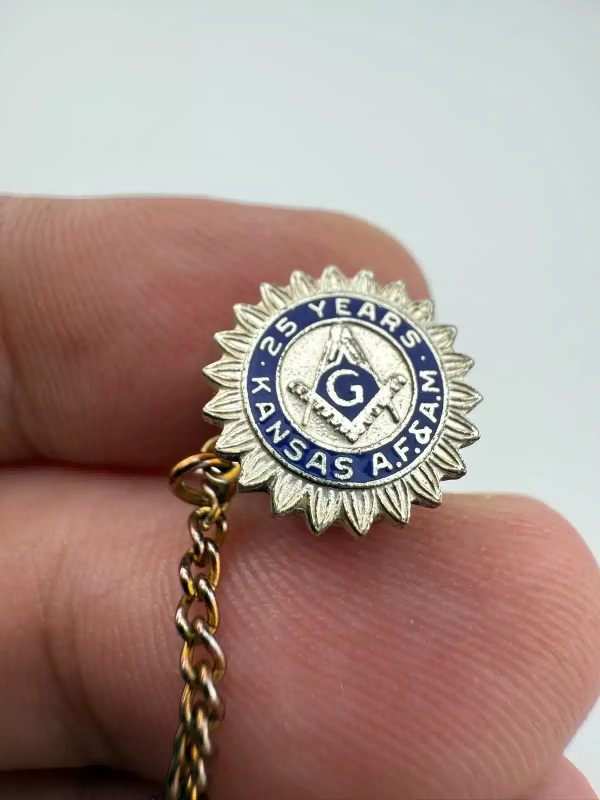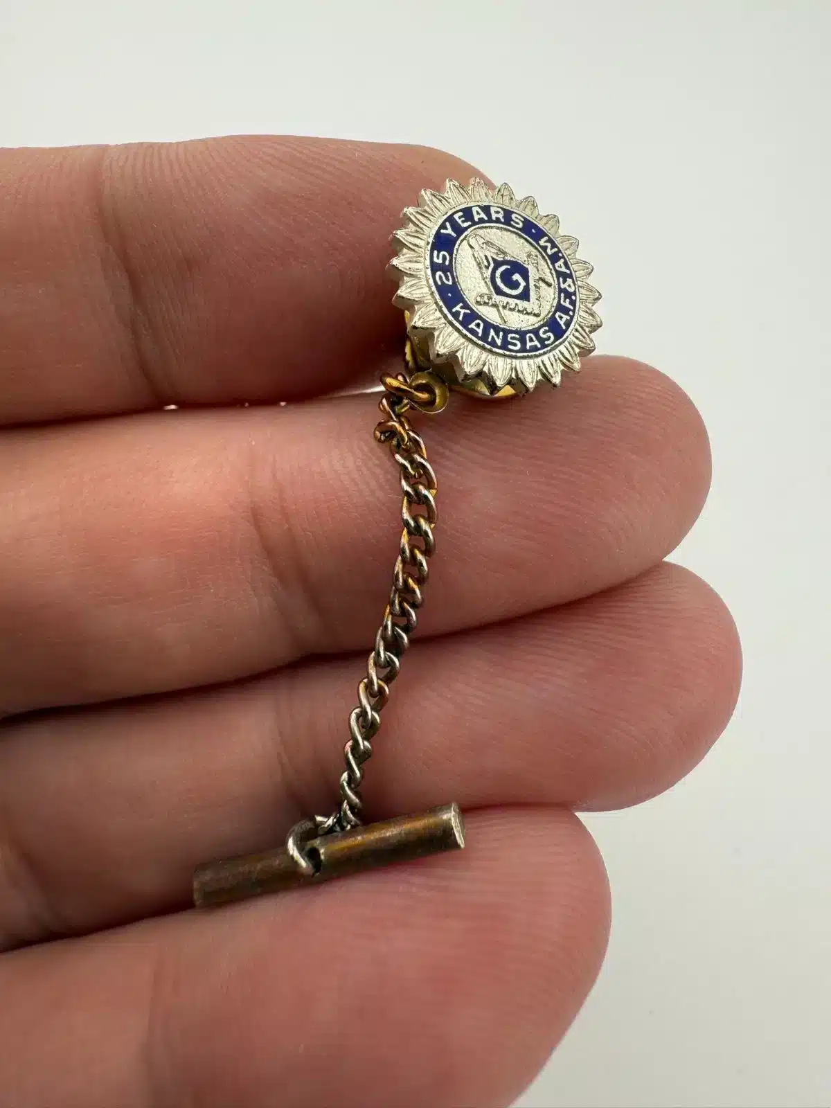 Freemason Kansas A.F. & A.M. 25 Years Silver Tone Member Tie Tack Pin