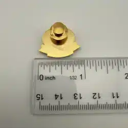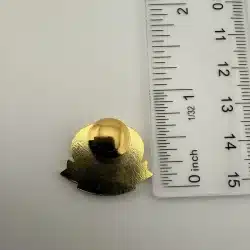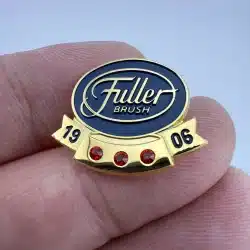 Fuller Brush Company employee service award pin – most likely 15 years. Features 3 small red rhinestones or similar and the company logo above.