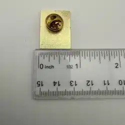 This 2018 graduation commencement pin from Fullerton College features their mascot: Buzzy The Hornet. Fullerton College is located in Fullerton, California which is part of Orange County.