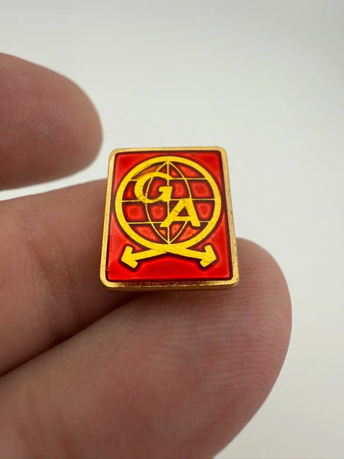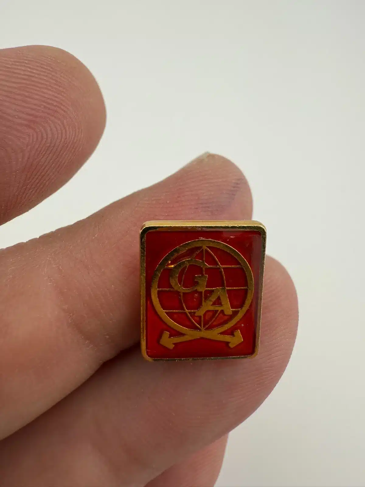 GA General Aviation Logo Advertising Pin – Red / Gold Tone