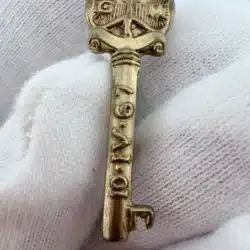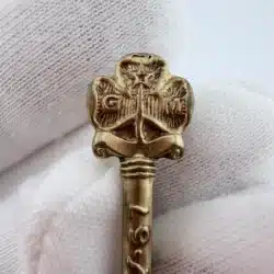 This pin is shaped like a vintage-style key in a gold tone finish, with the Girl Guides trefoil at the top marked with the letters GM. Along the shaft of the key are the characters 10.IV.67, forming a simple and distinctive commemorative design.