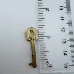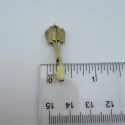 Pin measures just under 1/2 inch in width by just over 1 1/4 inches in height.